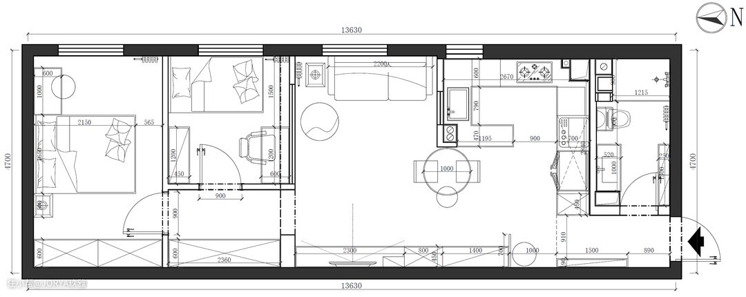 海淀经典长条户型,改造成收纳多、采光好的简约法式风
