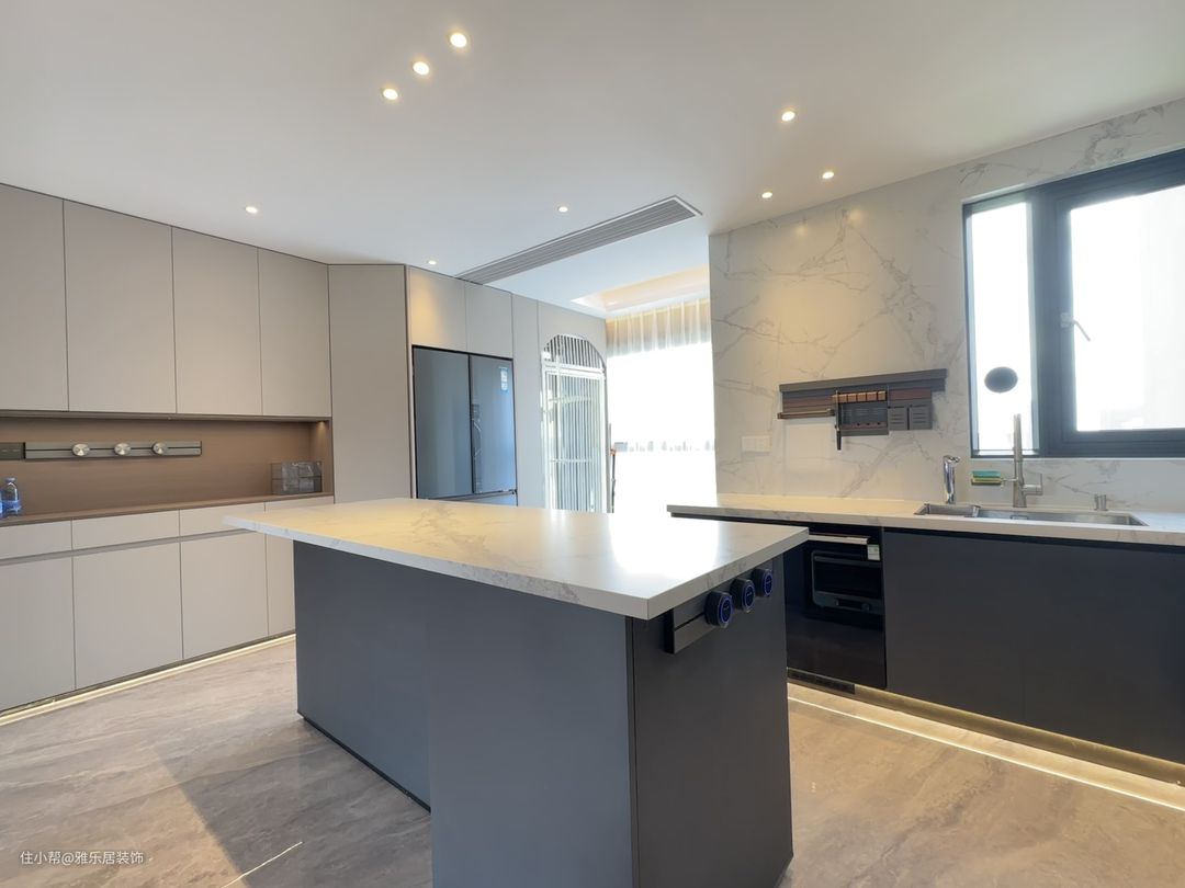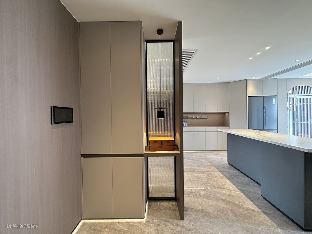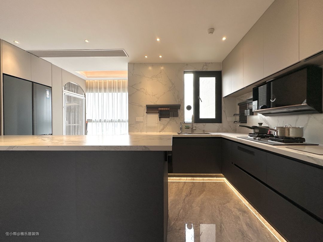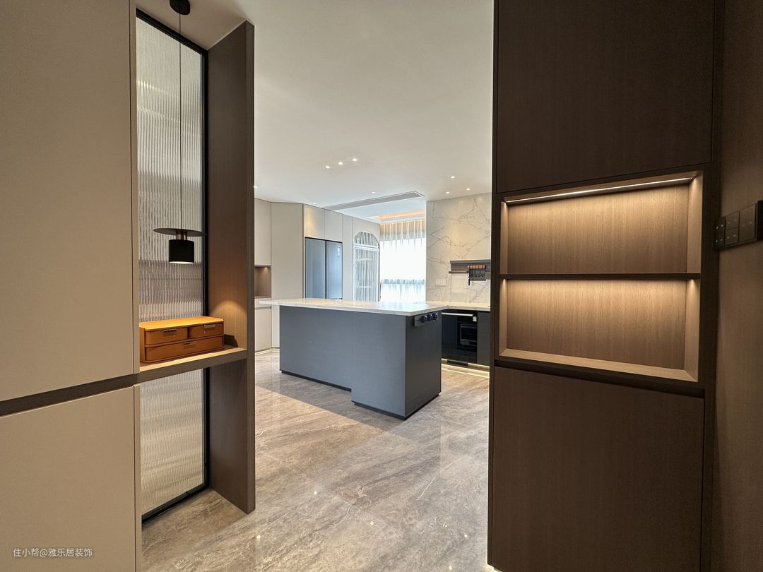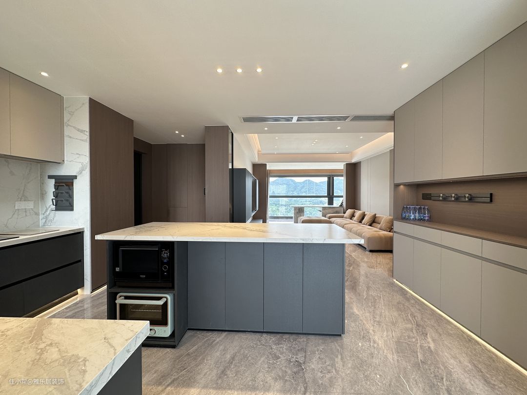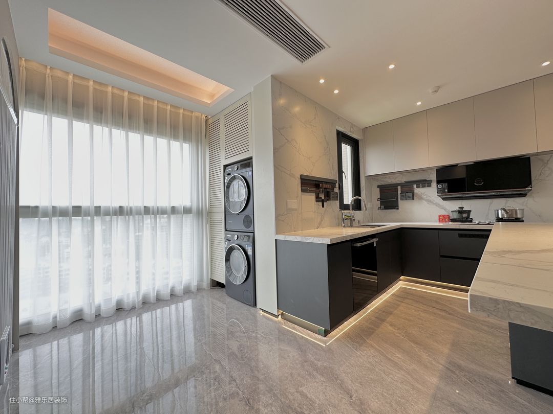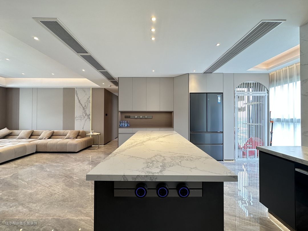 餐厨开放一体式,用倒台代替餐桌,不仅最大程度保留室内自然采光,也能增强家庭成员间的互动,让下厨也变成了一种乐趣。