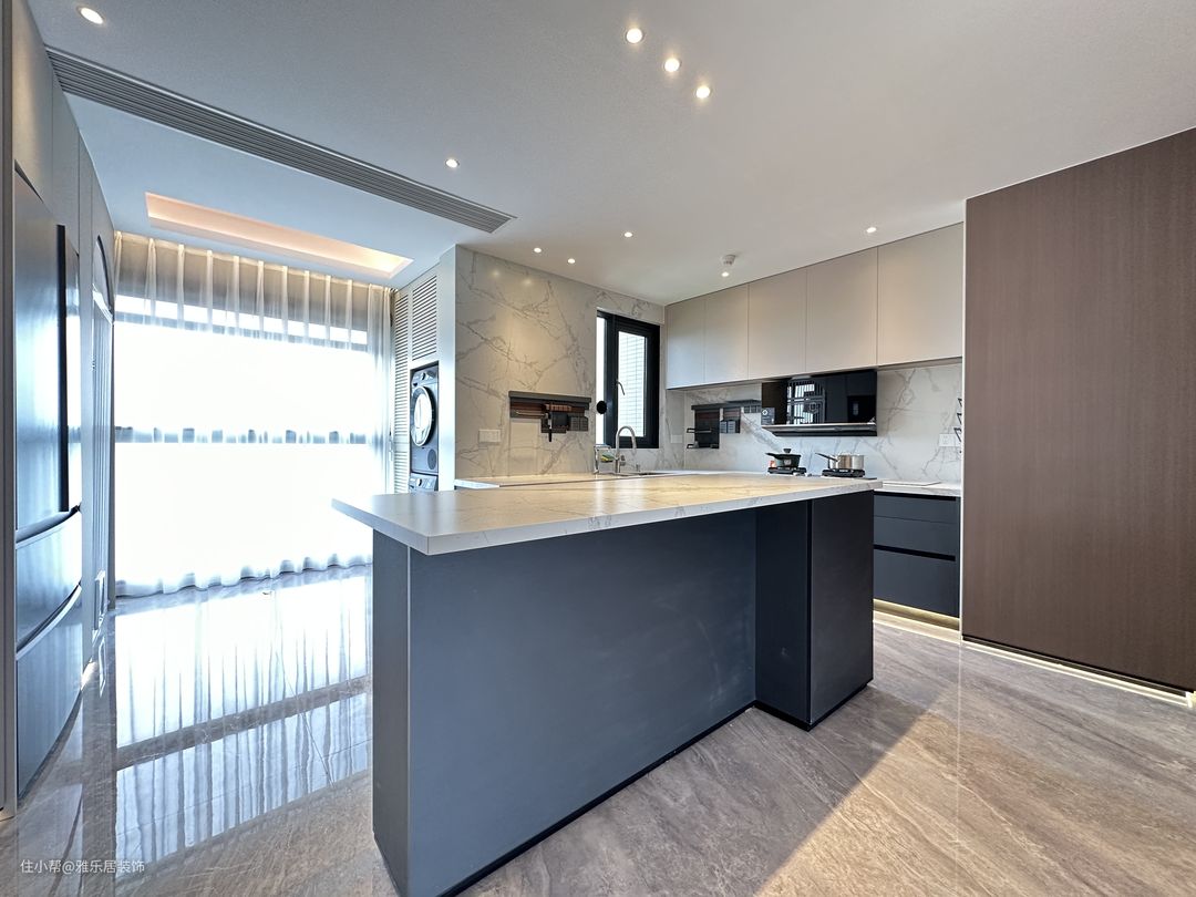 餐厨开放一体式,用倒台代替餐桌,不仅最大程度保留室内自然采光,也能增强家庭成员间的互动,让下厨也变成了一种乐趣。
