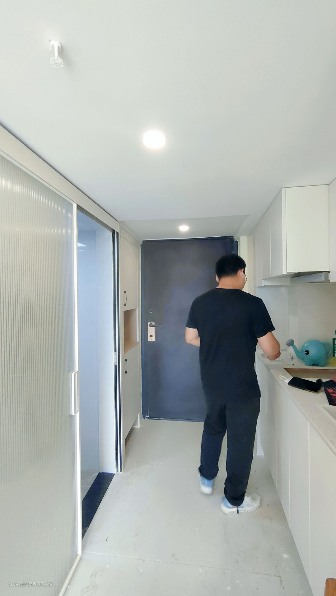 哈喽,首先是一进门的位置,有效利用有限空间,进门左侧是厨房,右侧是鞋柜和卫生间。鞋柜是嵌入式设计,节省空间的同时还能满足日常收纳,超赞👍
