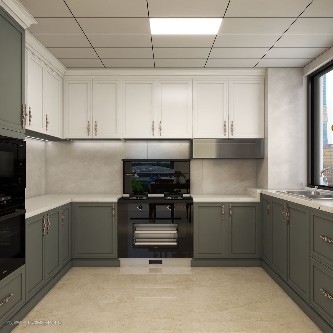 厨房上下配色,白色和蓝色搭配,清新而自然。