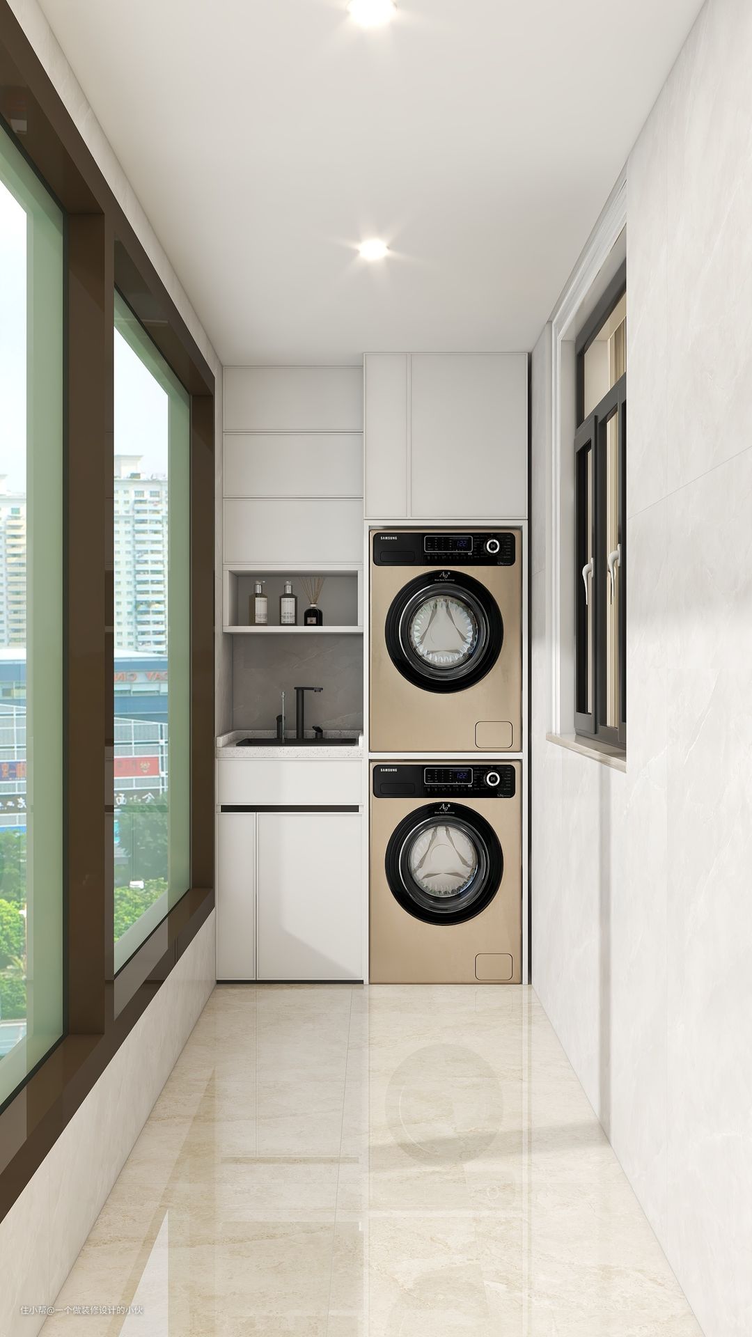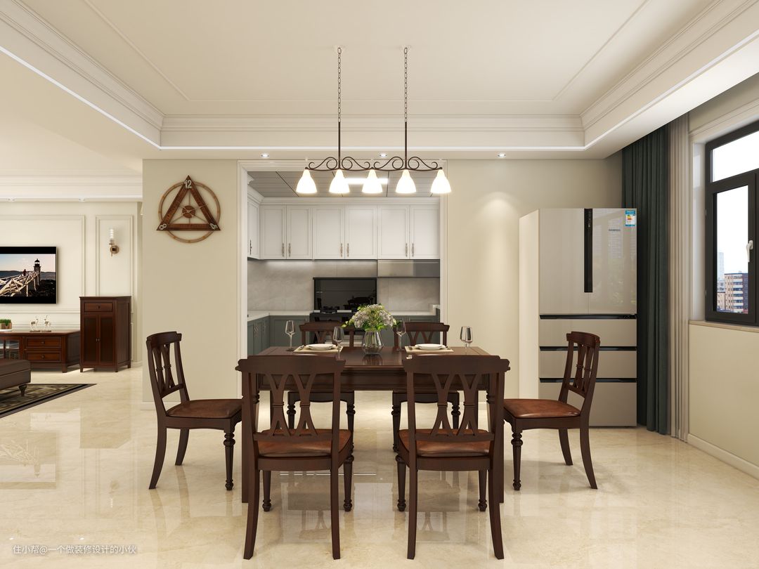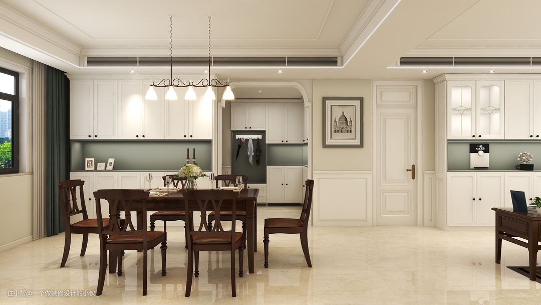 餐厅搭配白色墙板与酒柜的颜色混为一体。