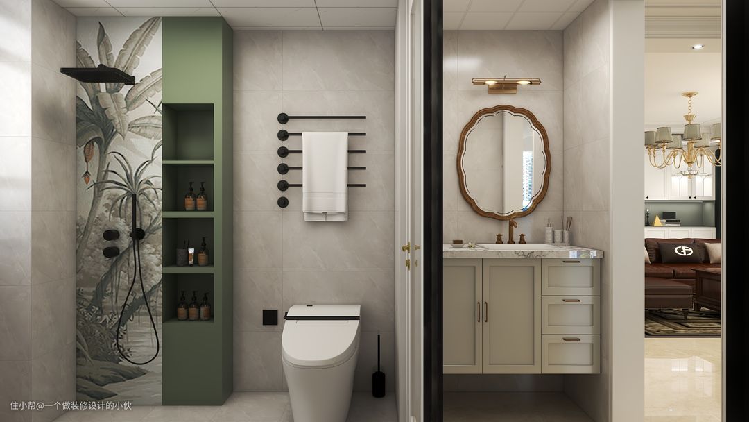 古典的棕色、白色大面积运用,搭配一抹蓝色,让空间在有古典美的同时不是现代的清新。