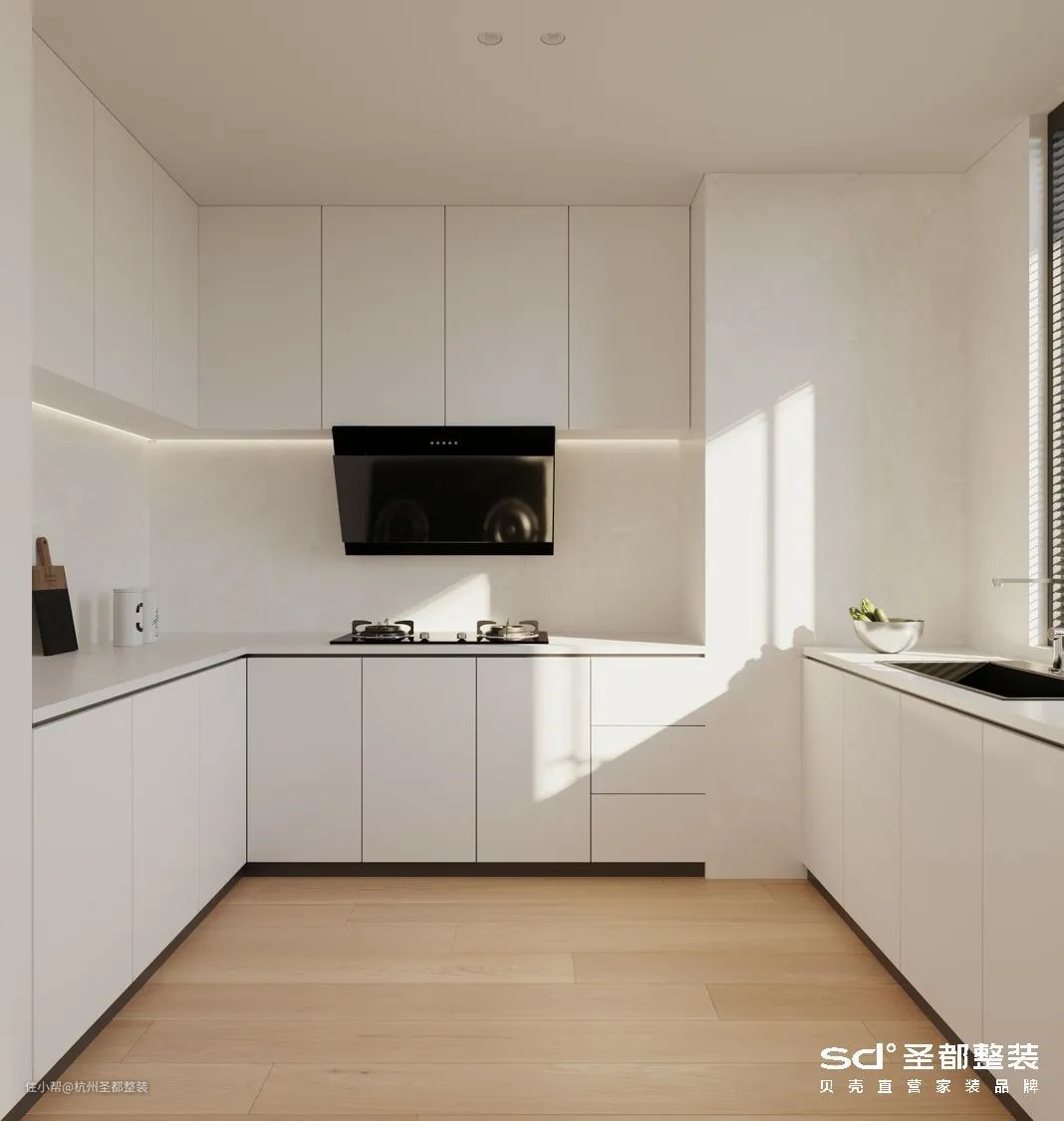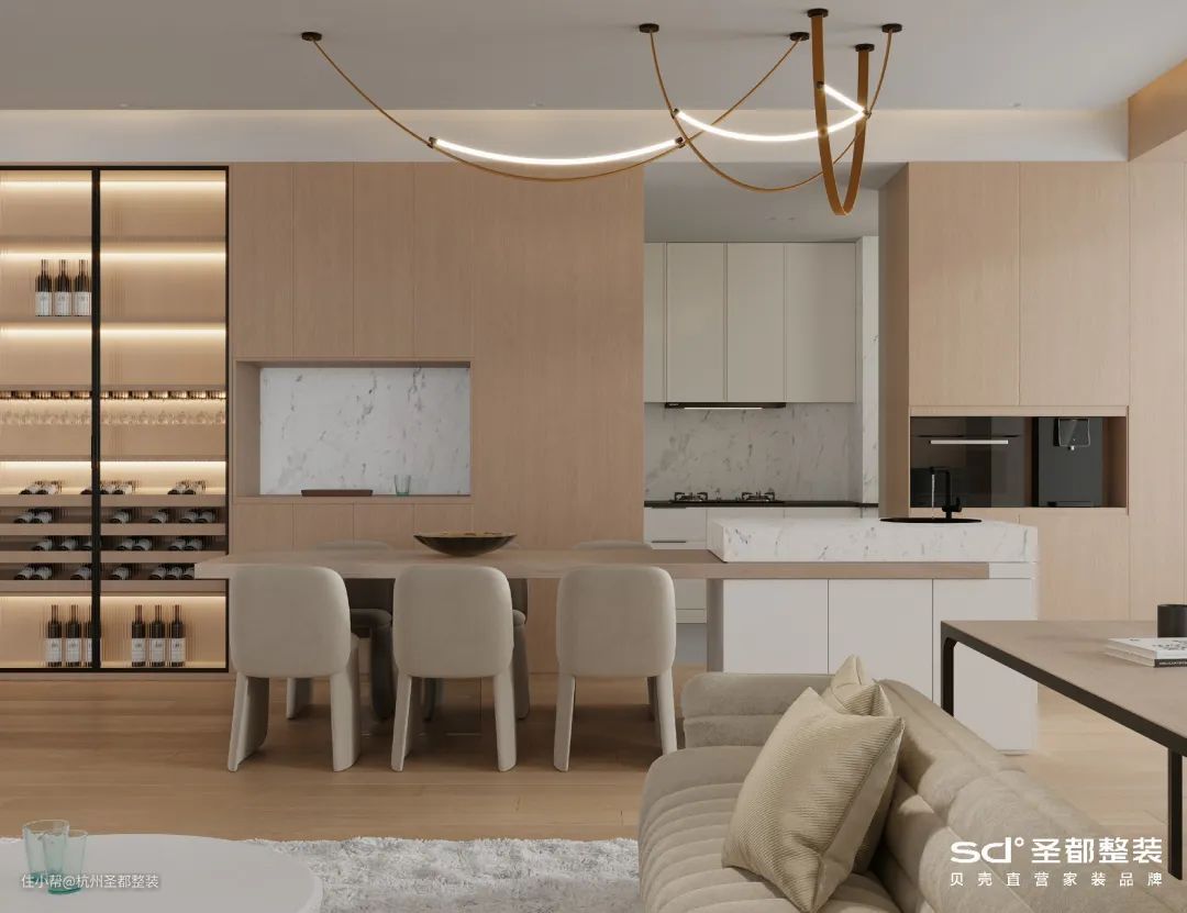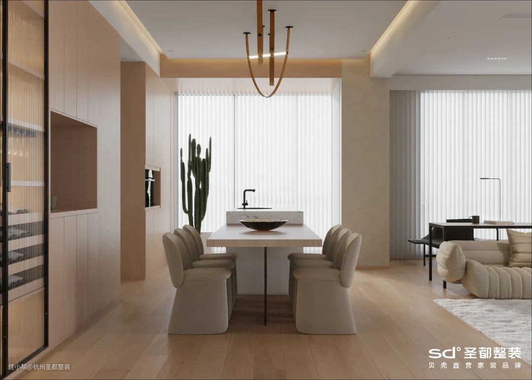 餐厅临近厨房,动线简洁流畅;新增一个岛台,形成餐岛一体化,满足女主人对于西厨的向往