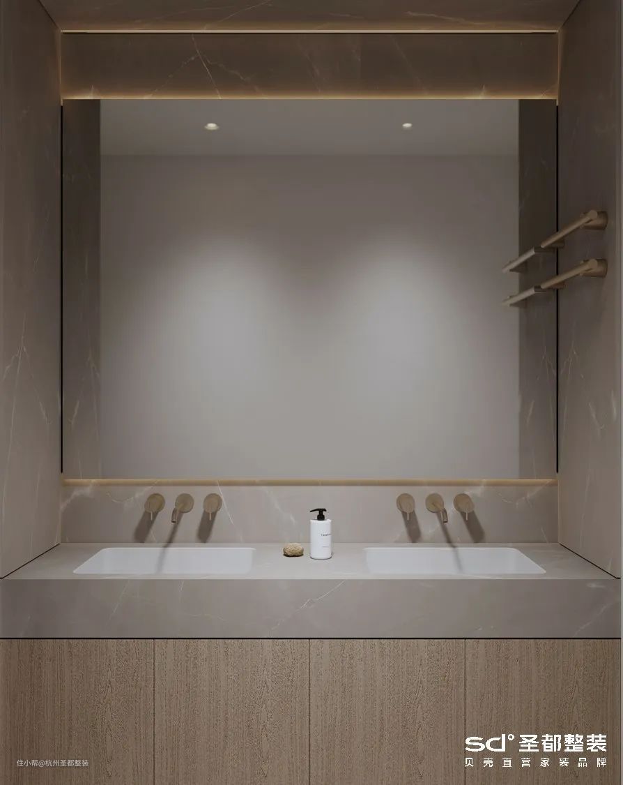 公卫规划成干湿分离的样式,不仅可以提高生活效率,还能保持卫生间的干燥和卫生。