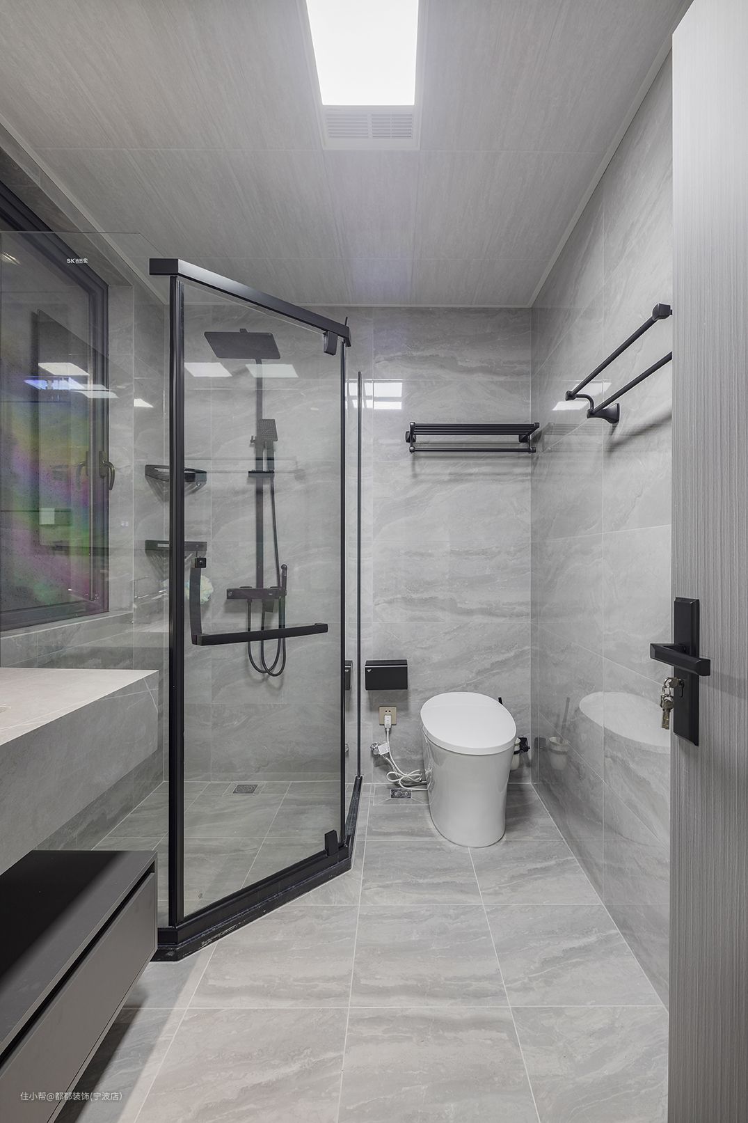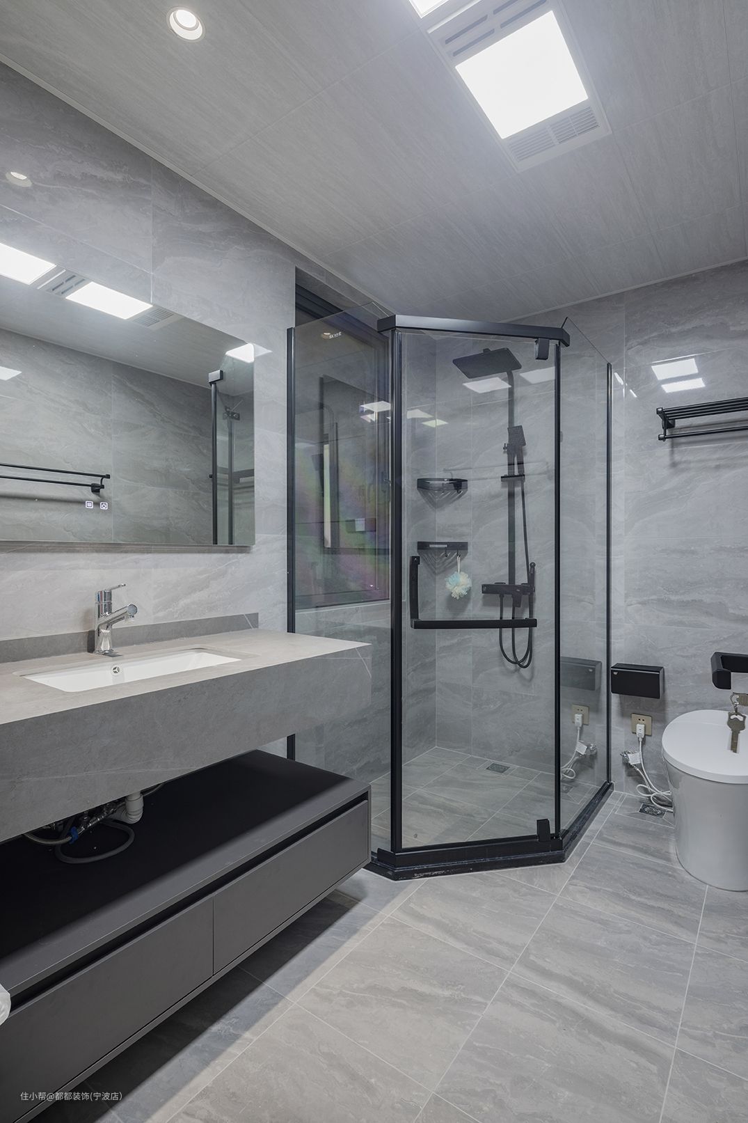 主卫分离式设计保证了空间的干爽和使用的便捷,玻璃门良好的透光性缔造出开阔深邃的视觉感受,灰黑色百搭耐看,实用性与舒适性兼得,一个干净清爽的卫浴空间,则是舒适生活的首要条件,砖石型淋浴空间让人倍感自在。