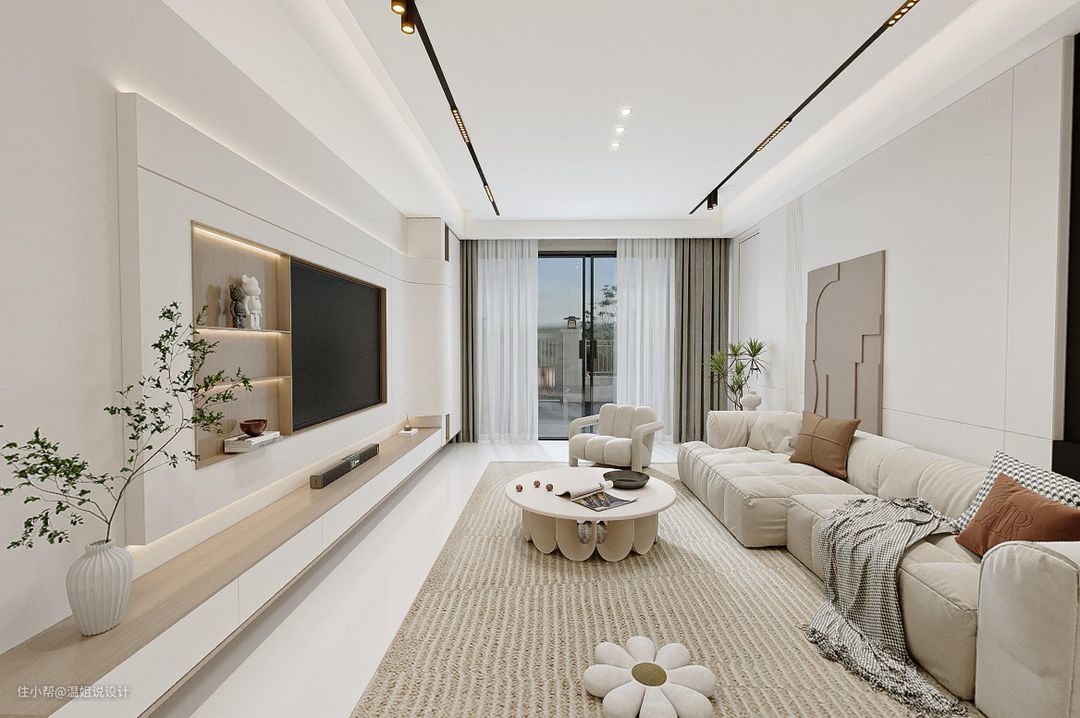 奶咖色覆盖整个客餐厨厅,展示浪漫恬静的魅力,落地窗让光线落入空间,流动梦幻的光影,与客厅同色系软装饰品的搭配,营造出高级又温馨的用餐氛围。 #寻找1%的厨房