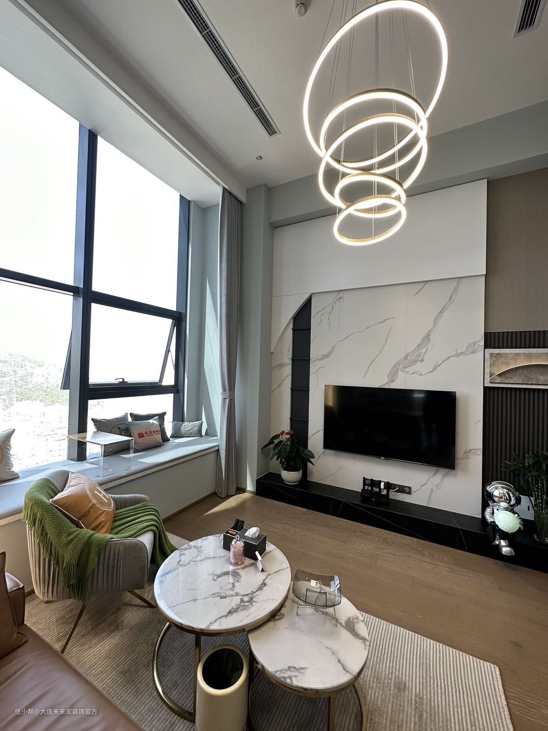 二楼主卧是两面环窗的设计,整个空间阳光充足且通透,采光非常好。小纱帘的设计,风吹过时更让空间有梦幻般的氛围感。窗边放置懒人沙发,作为业主的小小休闲之地的设计,拉开窗帘便是海景,使生活的幸福感大大提升。