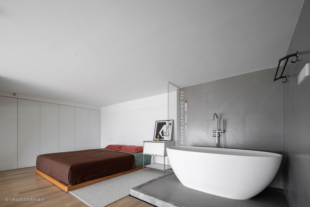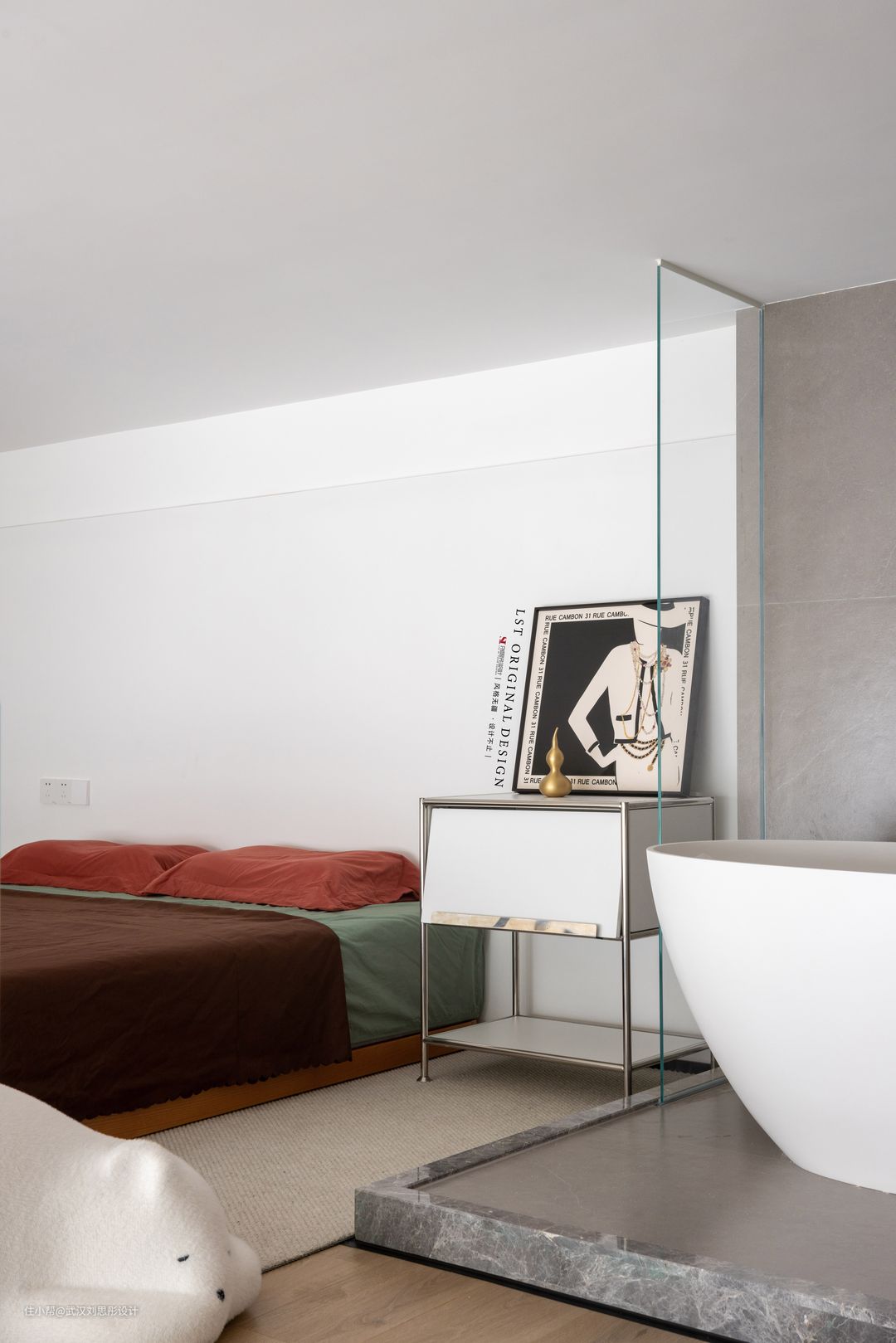 💦四分离卫生间分区明显,完全开放的浴缸用透明玻璃作为隔断,既有效防止水花四溅,也不会让视觉效果产生狭小压抑,满足实用的同时,洒脱随意又个性十足。