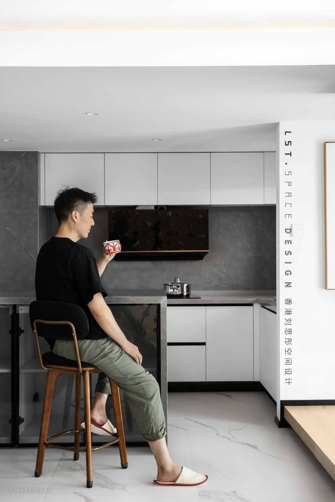 ✅台面统一使用了和橱柜台面一致的岩板,日常可作为厨房的补充操作台使用,也能同时满足4-6人用餐。