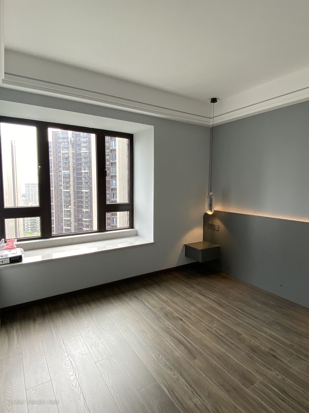 主卧做的是双眼皮+灯带设计,背景做的是灰色色漆,无需太多金钱花费也能让房间有满满的氛围感