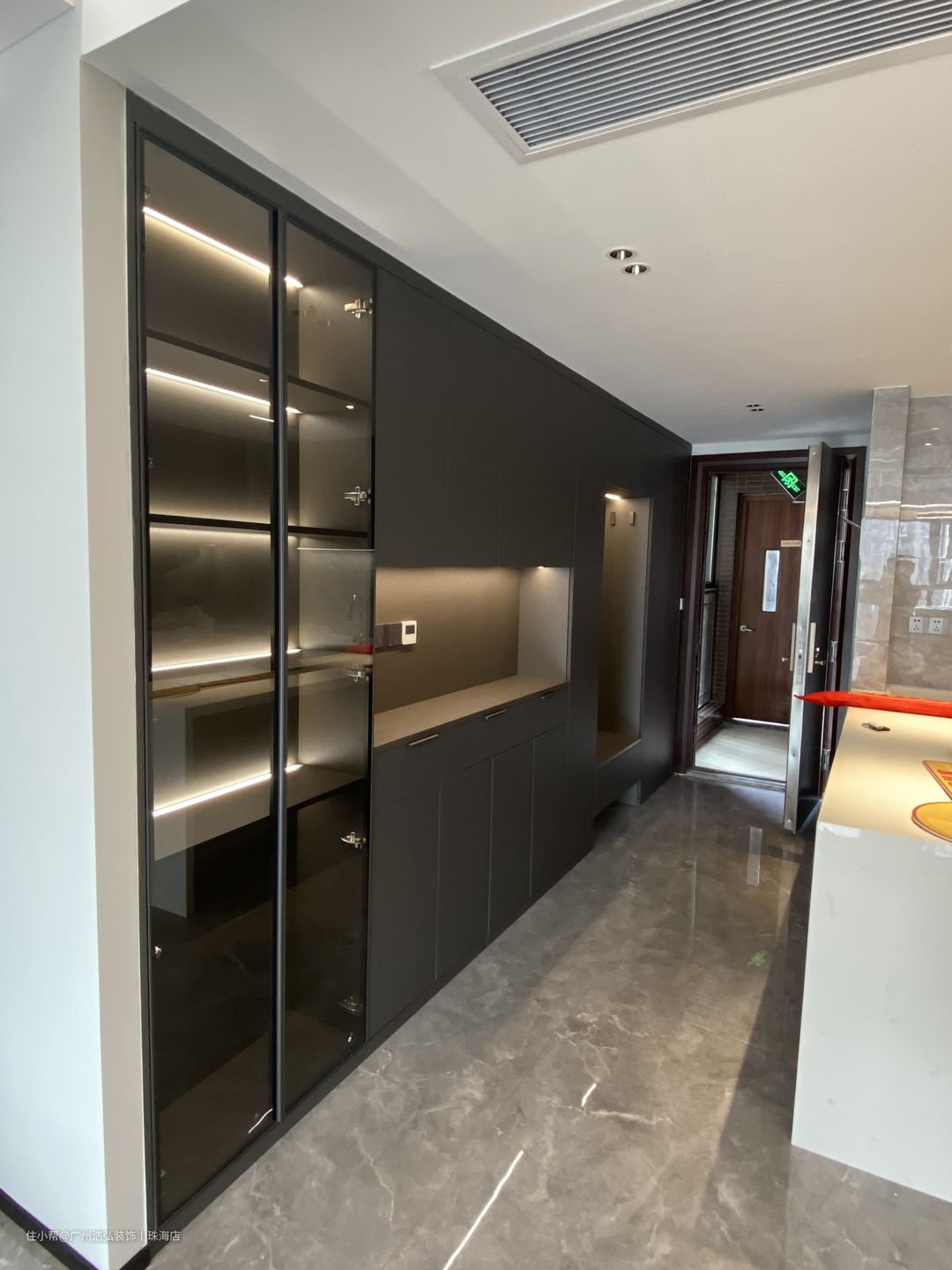 本案主要设计重点,层高不高,但是业主又非常喜欢无主灯设计,传统无主灯设计需天花下吊最少10公分,但是业主又不想房子太过压抑。所以我们采用的是灯带+轨道射灯+明装筒灯+辅助光源来做的一个无主灯按设计案例