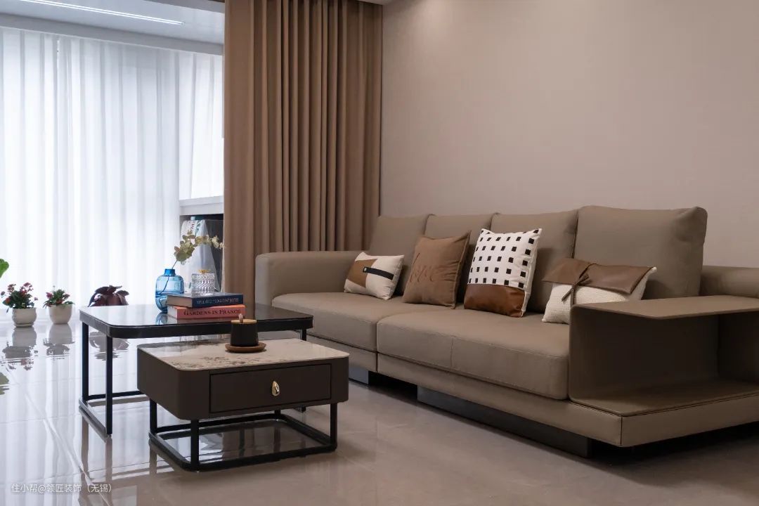 今天这套案例,是老两口给儿子的婚房装修,整体采用现代风的硬装基调,布置上简约的家具,细节以精致的元素点缀装饰,营造出舒适而高级的居家环境。