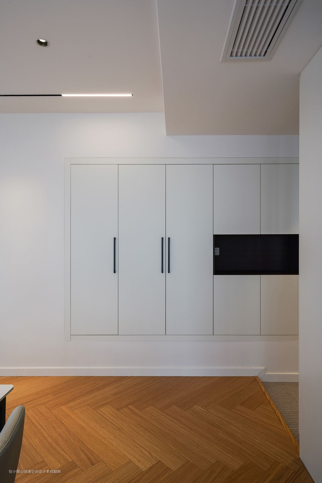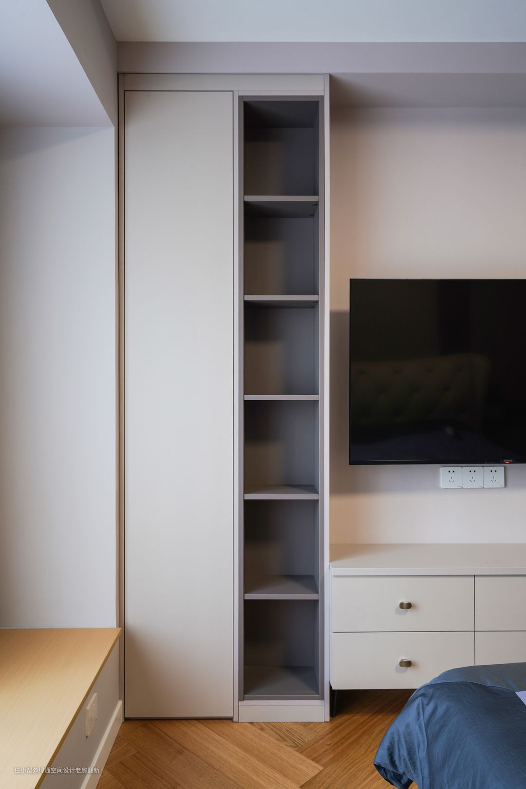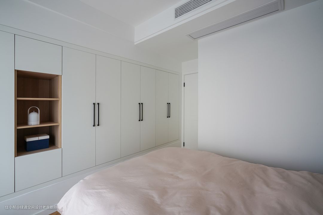 次卧是女儿房,以简洁和舒适为主,让身体彻底放松,没有多余之物,静谧雅致。木饰面包裹着白色的墙体,纹路清晰可见,深浅色拼接。一切都是温润和沉静的,与喧闹无关,即使身处都市中繁华的地段,依然可以自得自在。