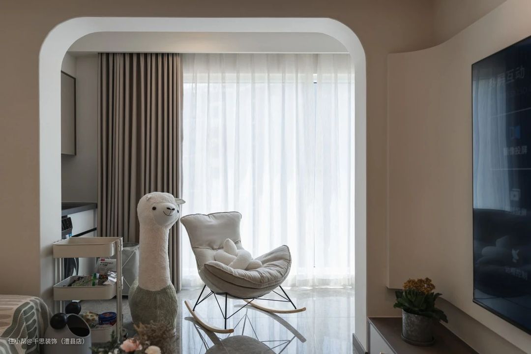 阳台,纳入客厅后,确保餐客空间的自然采光,形成里外透彻的客餐厅布局。拱形垭口的造型,柔和空间棱角感,增加空间设计感。