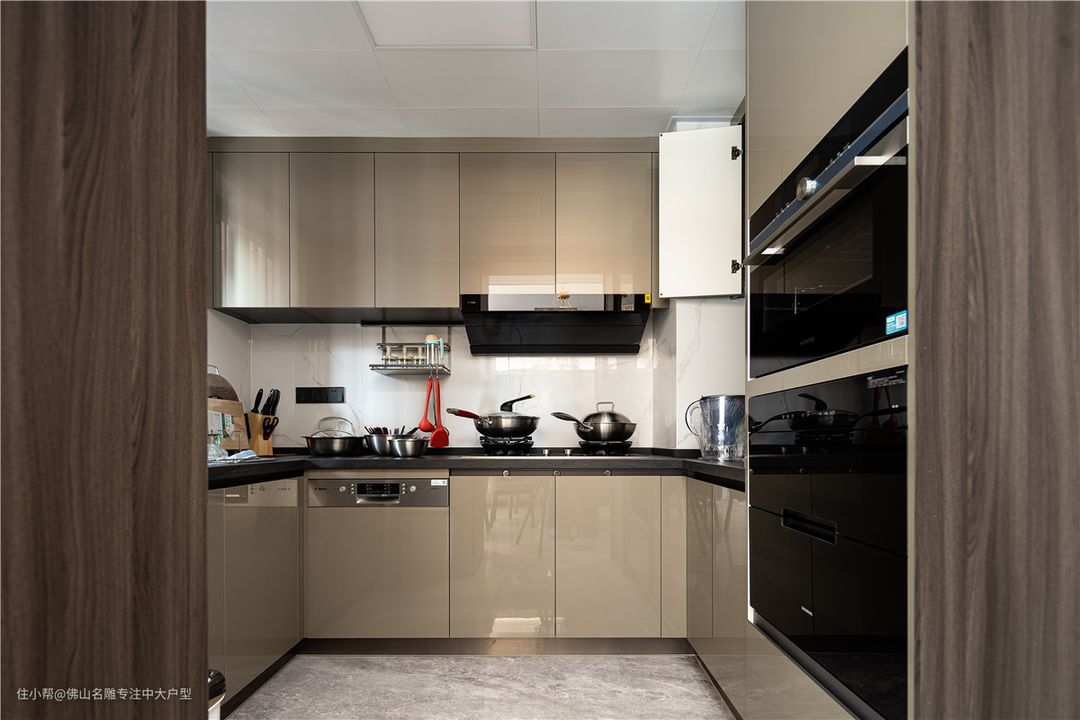 封闭式U字型厨房,每个物件都有合理的规划,没有明显界线感,同时空间也显得更大了。 在备菜区装了2组洞洞板,可以挂勺铲和一些小物件,调料品也是上墙收纳。 厨房虽然不大但干净整洁,在这个小厨房里装满了生活的点点滴滴。