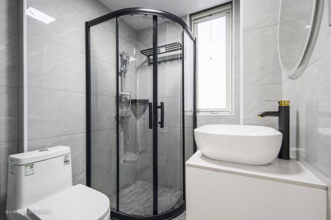 卫生间做的台上盆设计,玻璃淋浴隔断,干湿分离,更健康。