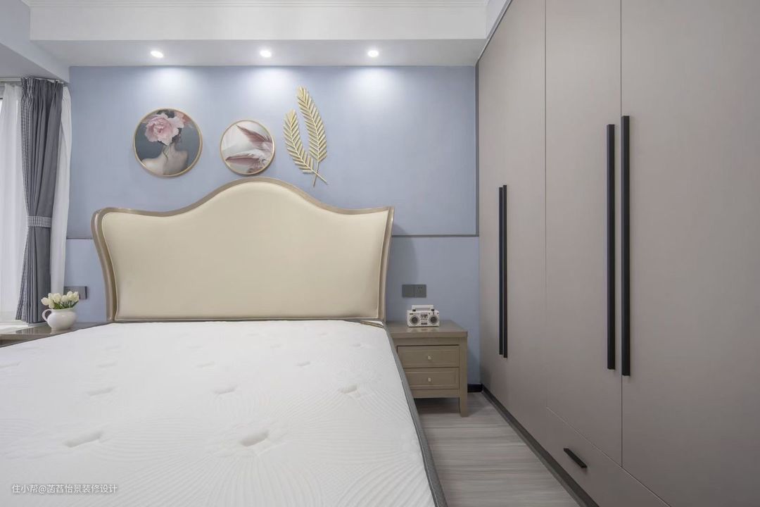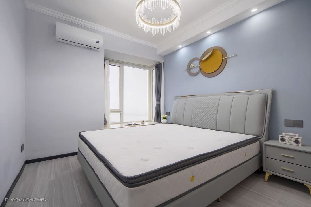 卧室床头了做了一组射灯,光线更充足柔和。彩色环保乳胶漆调色,空间更显温馨舒适。