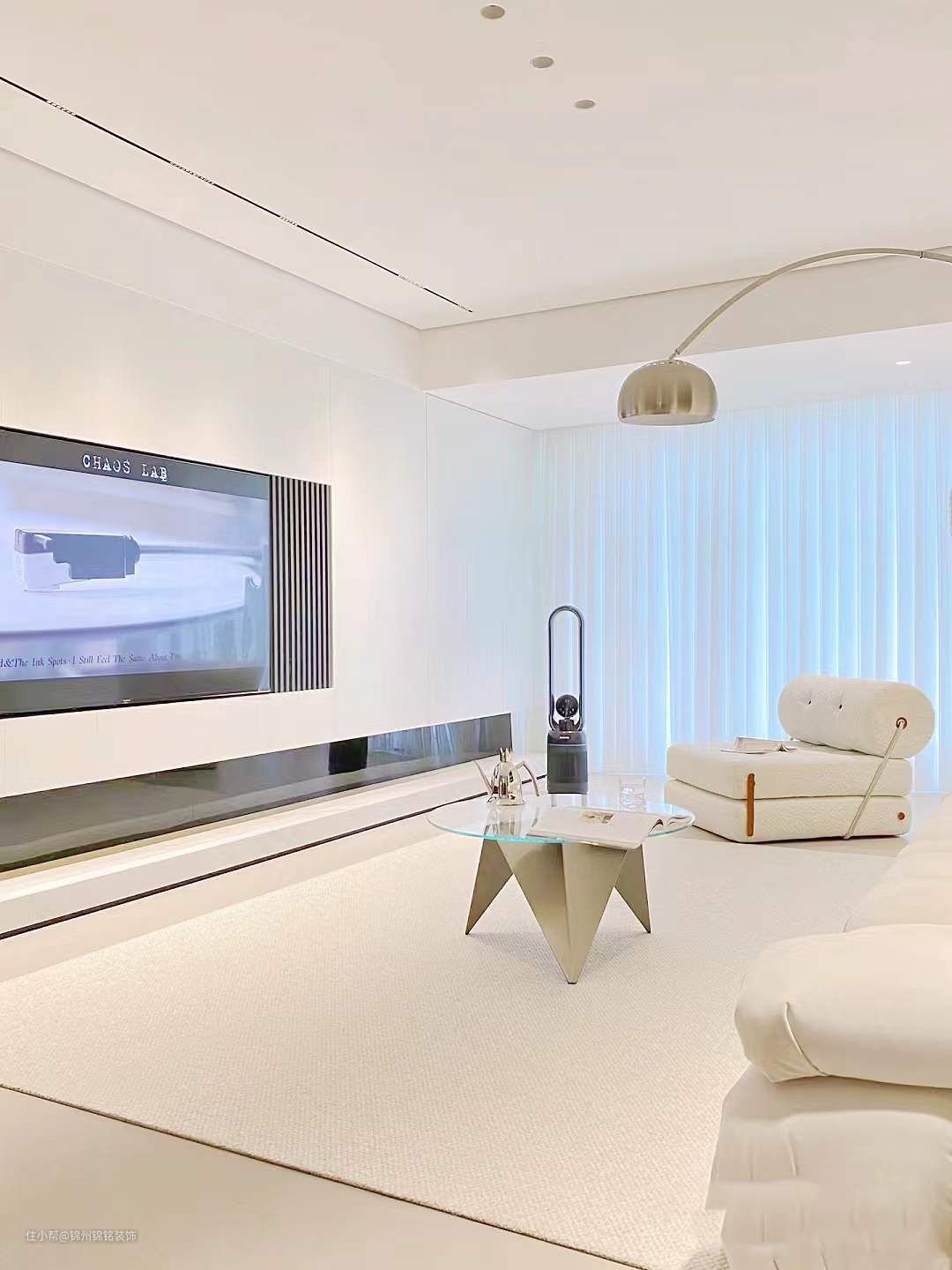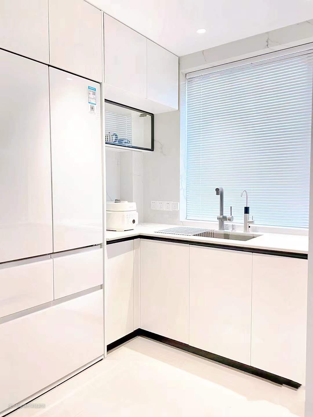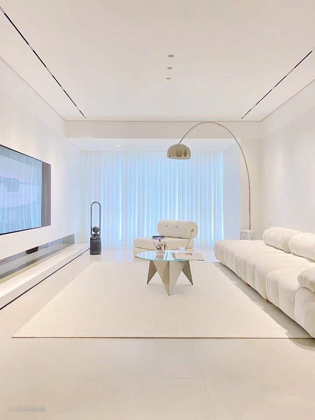 阳台打通扩入客厅使用,客厅大了不止一倍,还可以轻松自由变换软装。大砖通铺,公共区域及厨房通铺通铺900x1800大砖,不做过过门石。全屋大平顶,整体干净显大,不显压抑。采用无主灯设计,光源比较有层次,公共区域射灯色温选择4000k。
