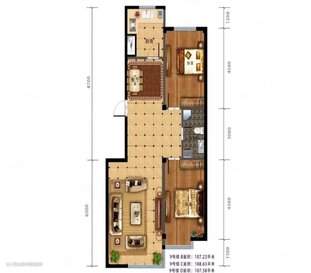 本案是一套107m的两居室,主夫妻俩对现代简约很感兴趣,对家的实用性和颜值上也有要求。因此设计师根据业主的喜好和需求,以整洁的硬装体现,结合软装和色彩上的细腻柔和,加入简约的流行元素作为点缀,打造出高颜的居住环境。