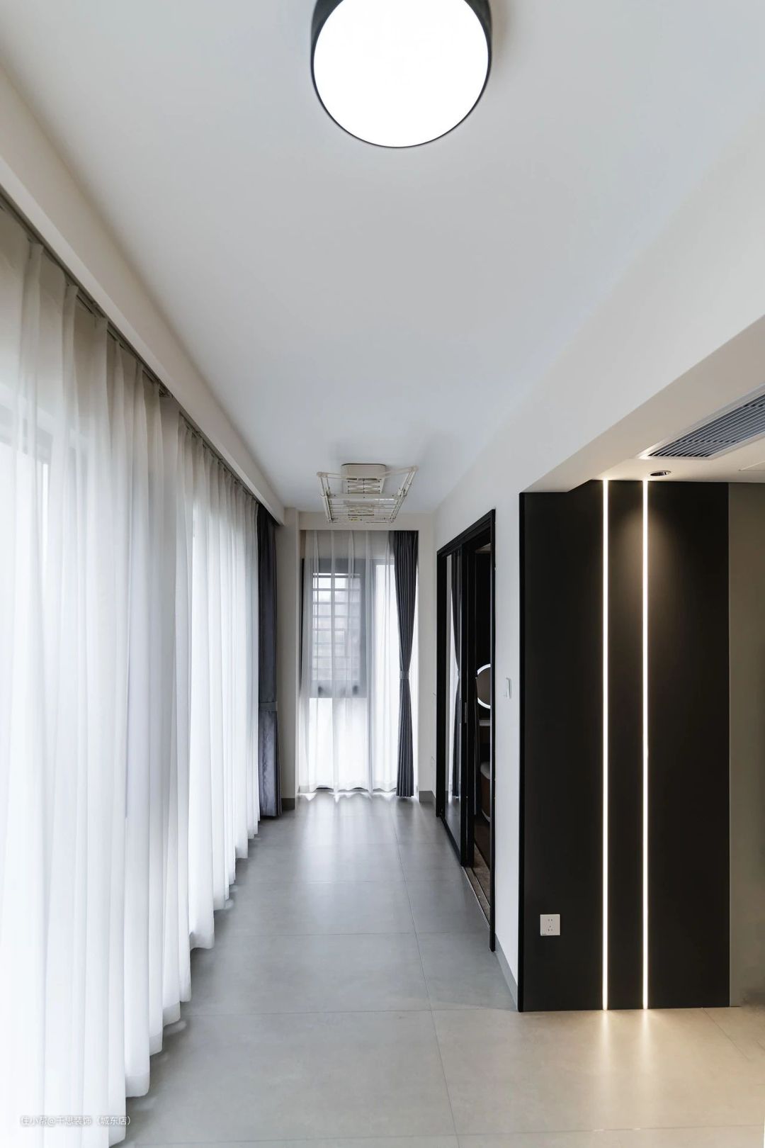 ▲ 对空间结构进行优化,打通阳台扩入客厅空间,打造全景式落地窗,提高视觉感,梦幻纱帘的搭配,让采光晾晒两不误。