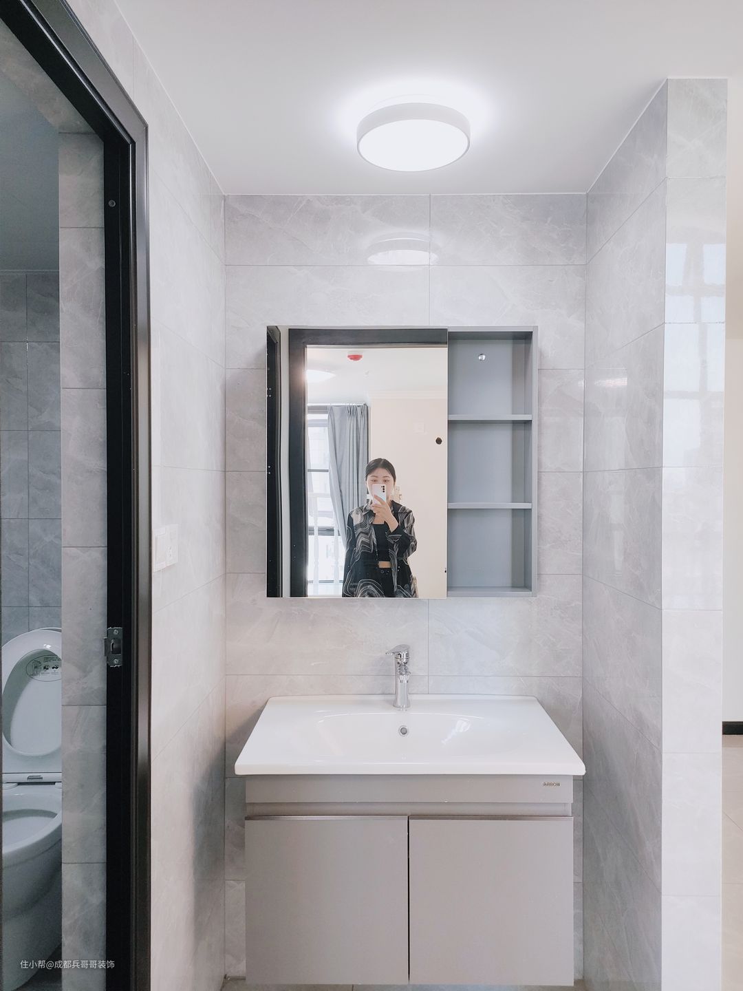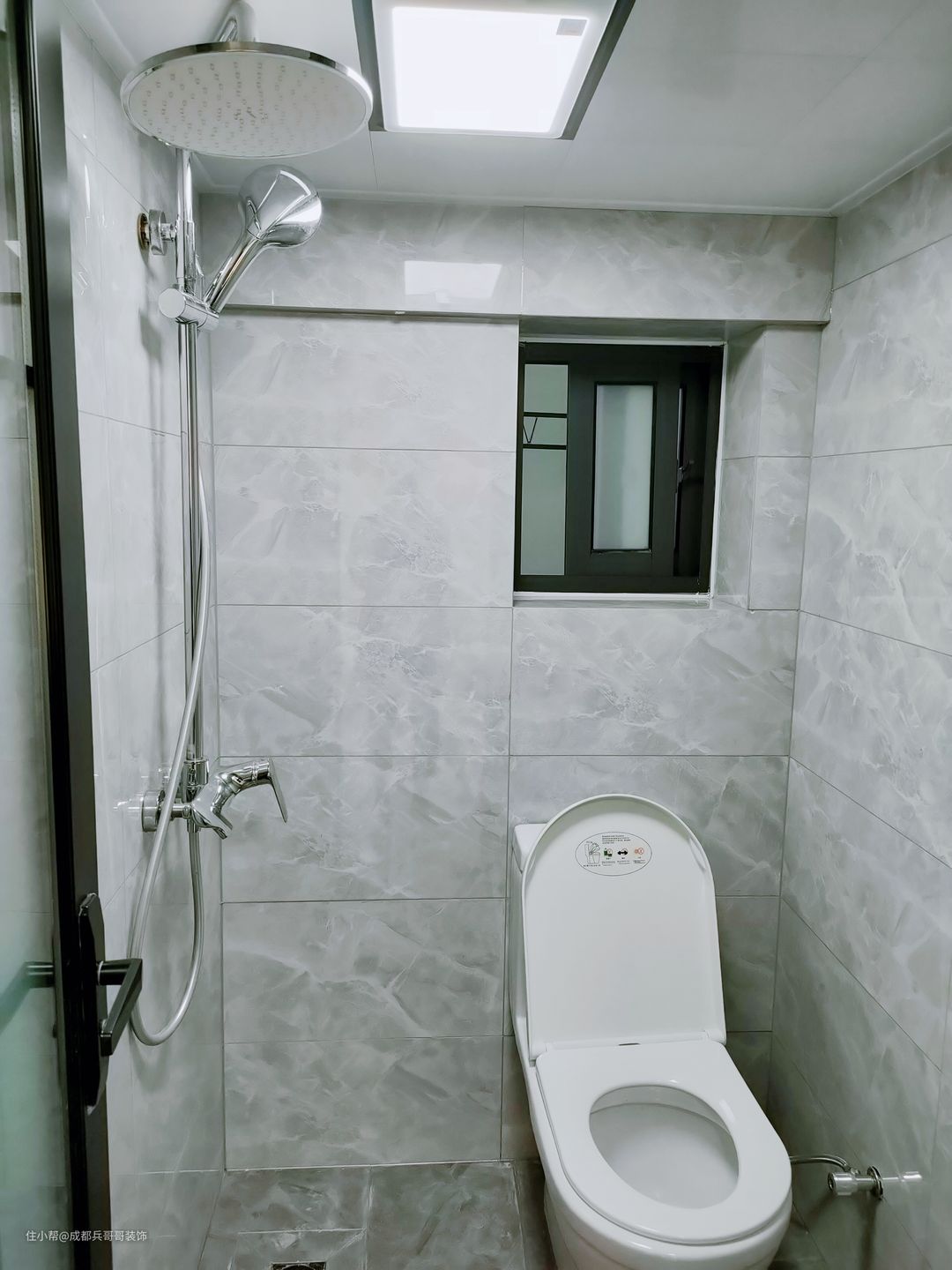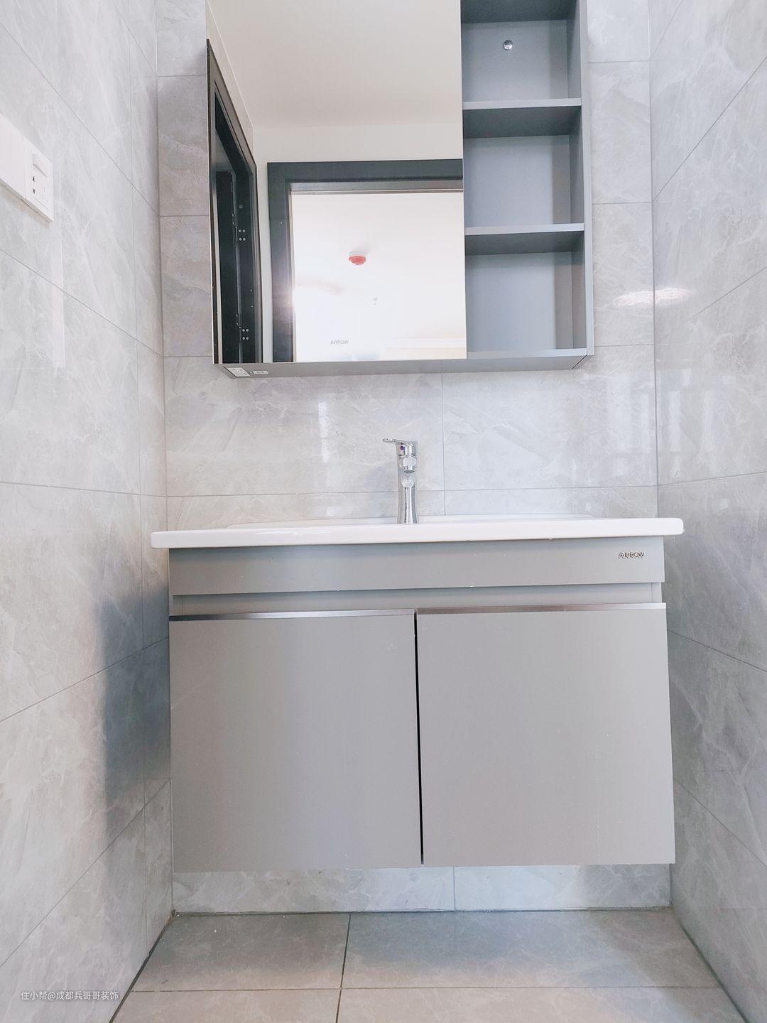 一二楼都设计的有卫生间,都是干湿分离得格局,外面浴室柜,里面是淋浴+马桶区,满足基本生活功能。墙砖、瓷砖同样通铺开来,浅灰色+白色设计,简洁又明亮,室内空间素雅、干净。