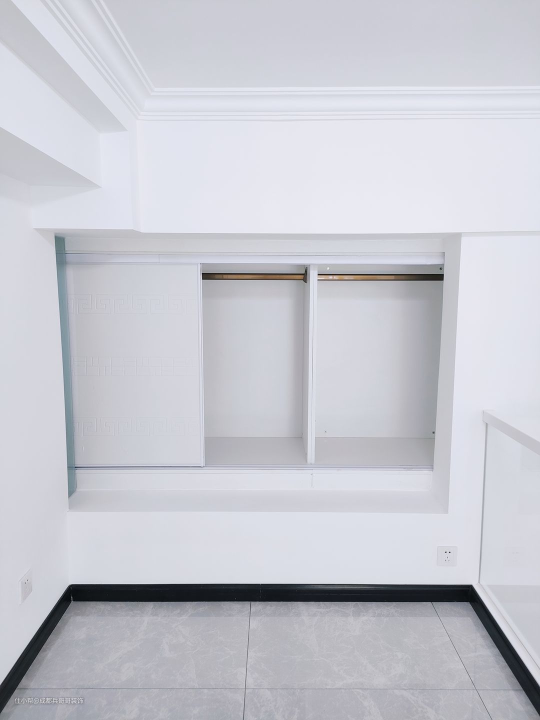 一楼卧室,是长辈房,不用上下楼,安全、舒适度更好,起居也更方便。长辈房安排了通顶式推拉门衣柜+一米八大床+飘窗区,这里也安装了扶手护栏,设计细节很到位~~