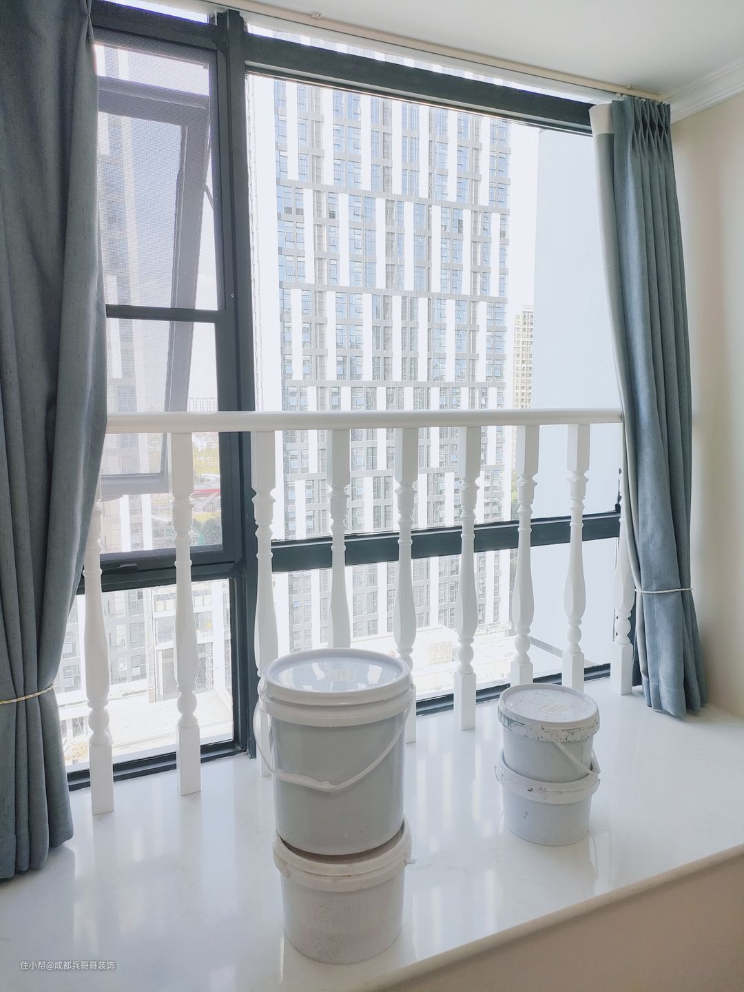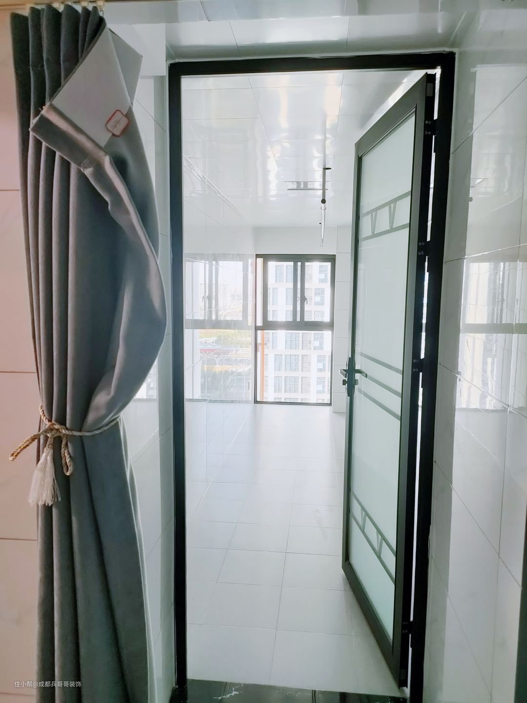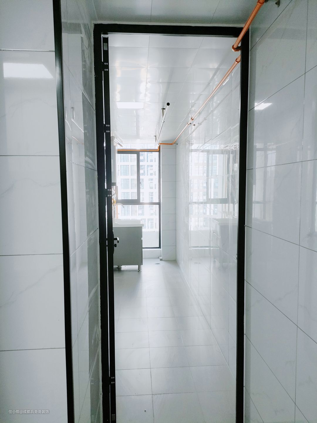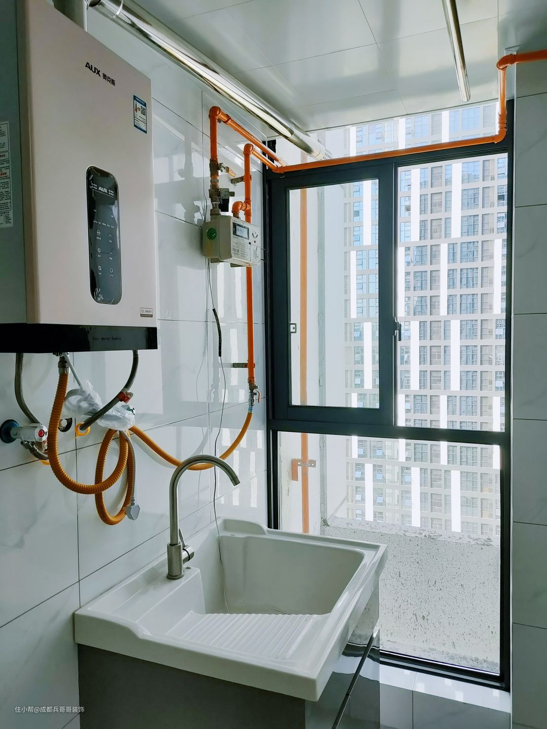 一楼阳台,放置了洗衣台、洗衣机,可以满足日常洗衣晾晒,采光通风效果还很好~~