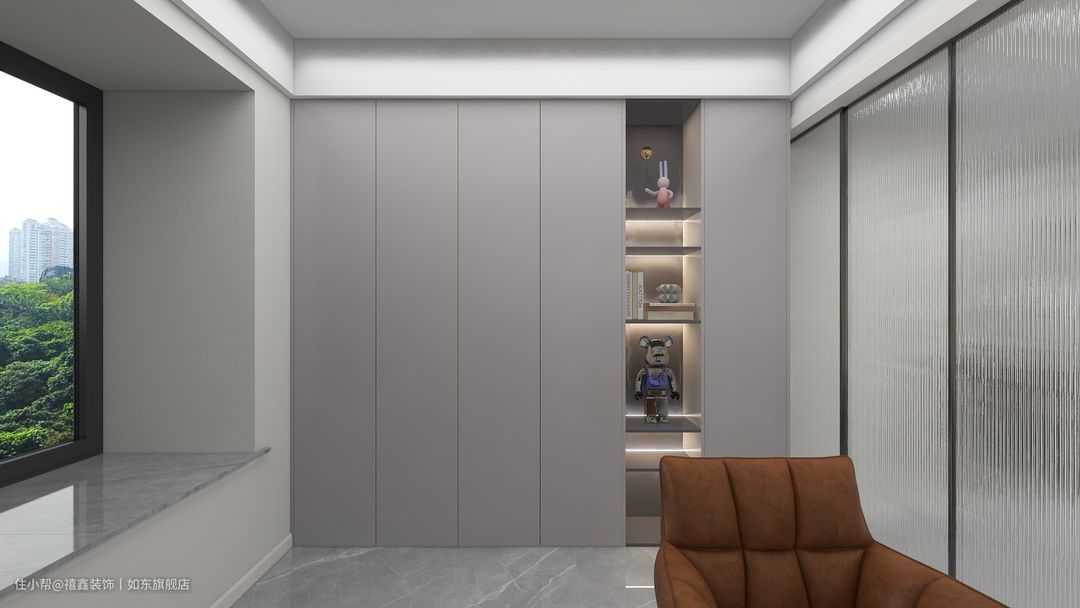主卧空间不大,但足够舒适。设计师和户主沟通后搭配灰、咖色为主的色调让整个空间沉稳静谧,更利于人体轻松入眠。