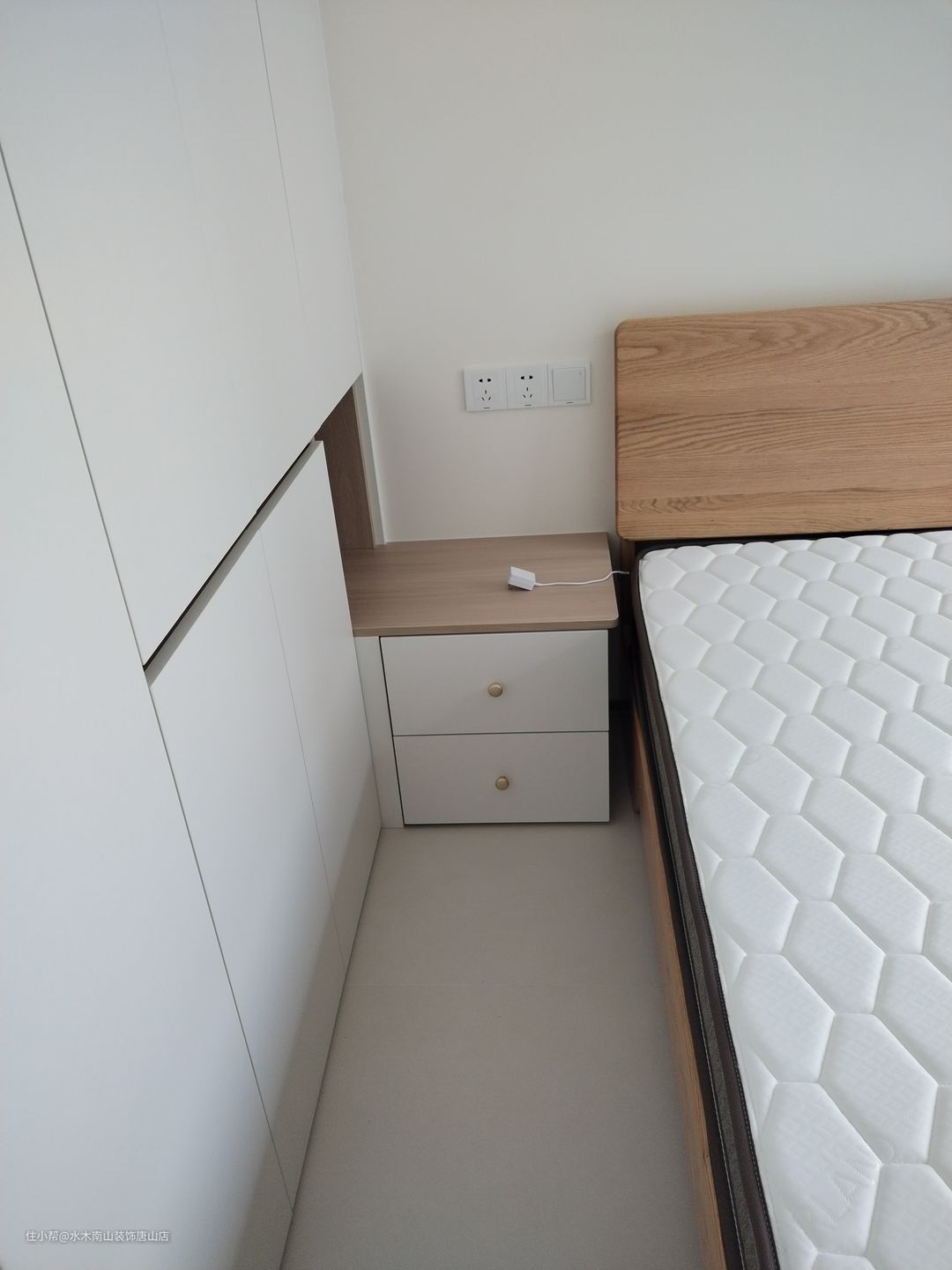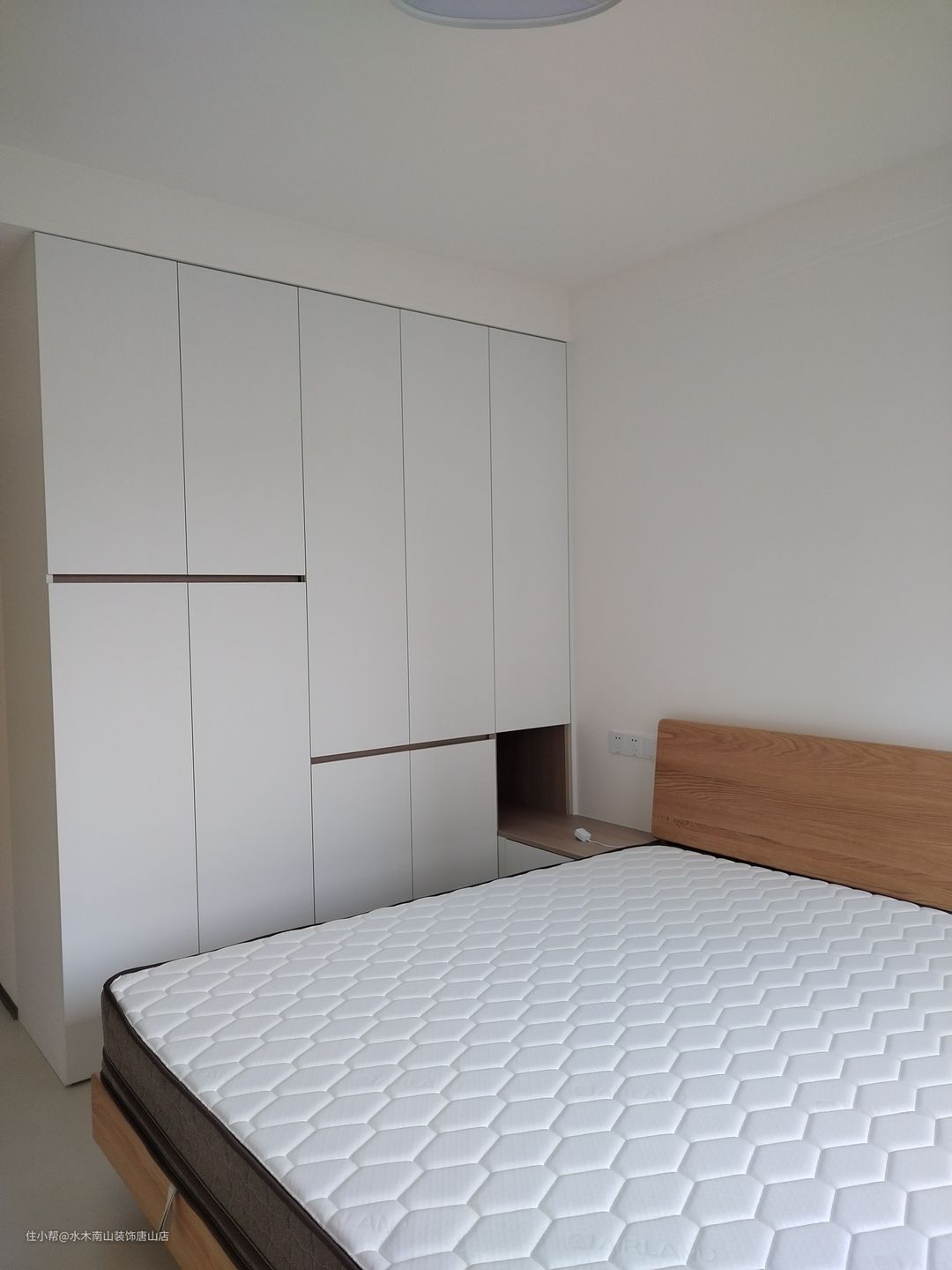 可抽拉转角柜方便放小件物品;衣柜到顶增多储物空间,也避免了后期打扫的麻烦;