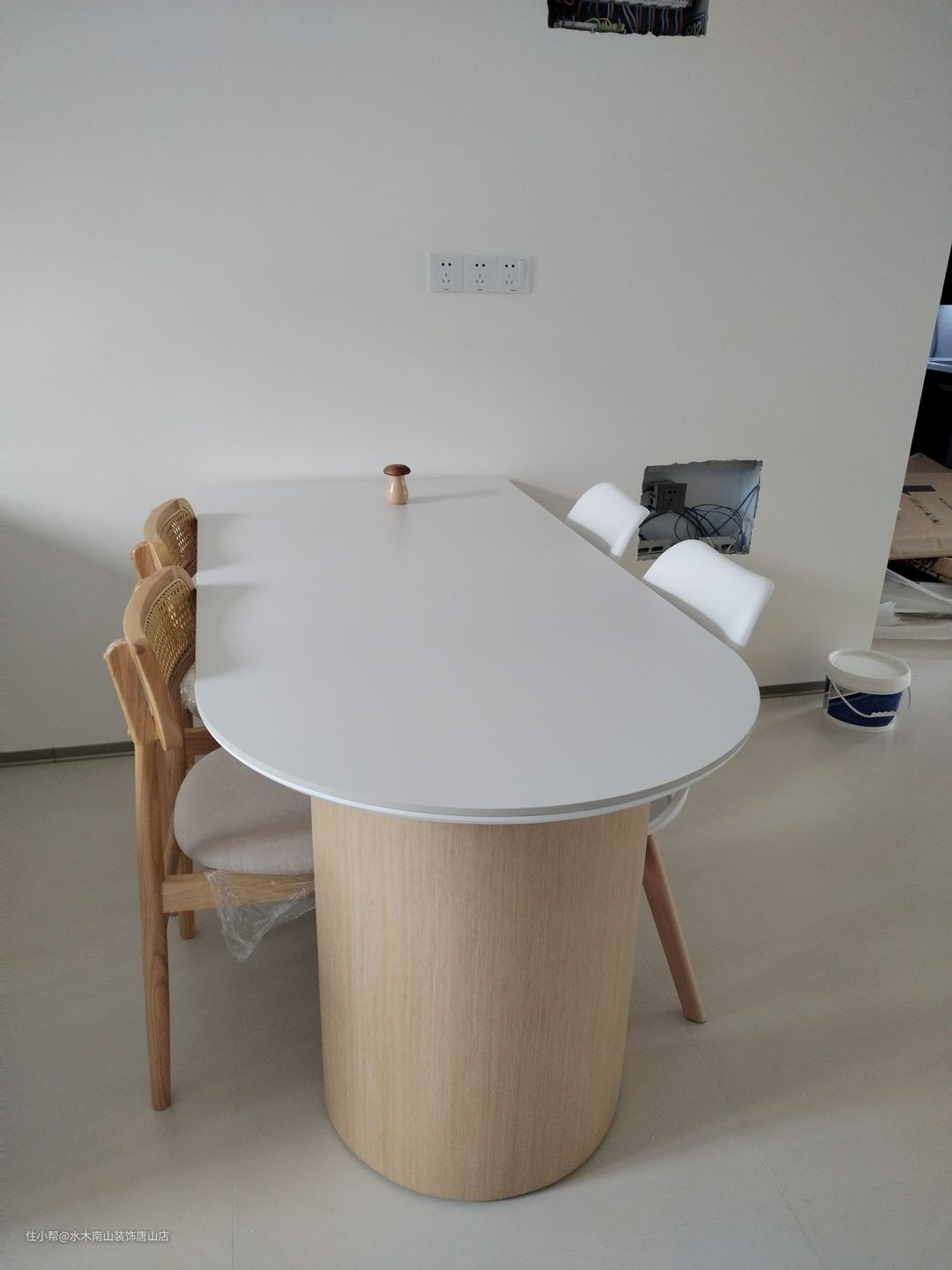 四人位餐桌也不显拥挤;小岛台设计,平时一个人的时候,喝喝茶点个外卖看会儿书都很惬意。