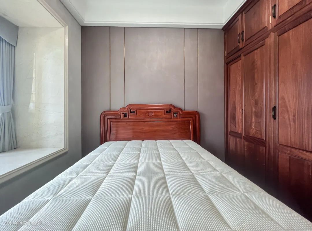 相较于公共生活区域丰富的设计感与视觉体验,卧室的设计,大程度上摒弃繁杂的修饰,主打轻松、温暖的基调。通过巧妙地运用物料的“质”,让空间呈现“清丽出尘外,绰约简逸兼而有之”的气质。