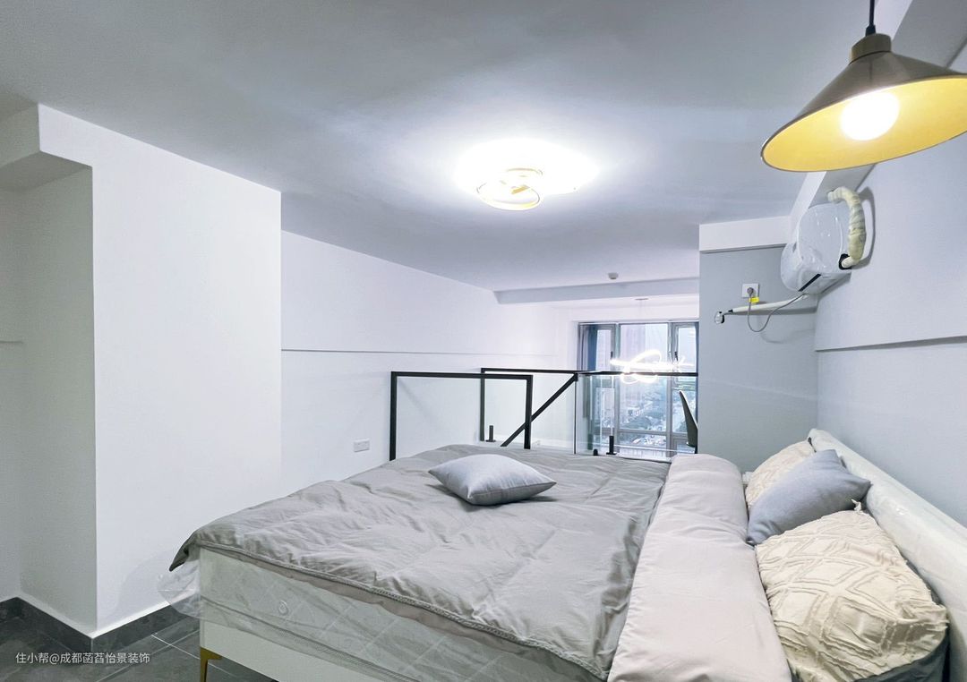 卧室利用侧边墙做了定制衣柜,增加收纳;靠边做了一个定制小书桌,满足学习办公需求。