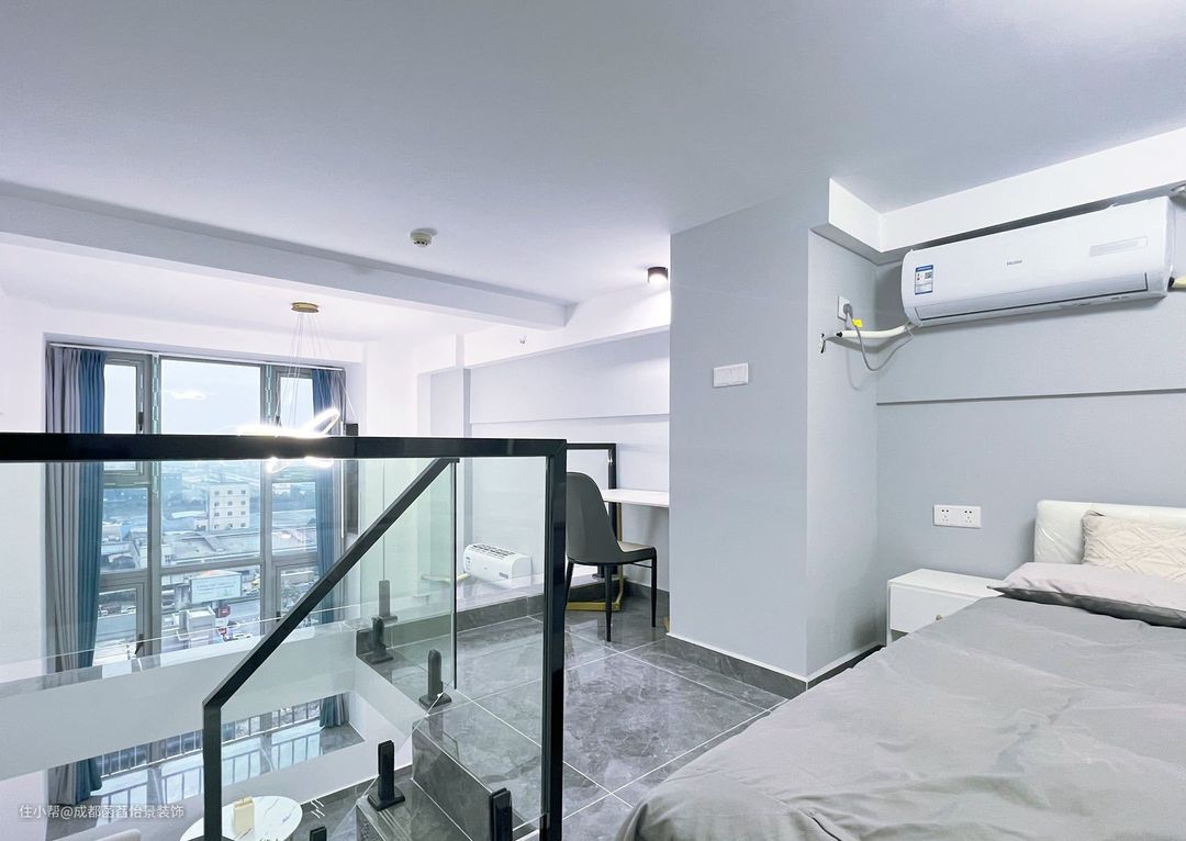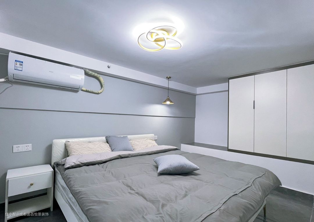 卧室利用侧边墙做了定制衣柜,增加收纳;靠边做了一个定制小书桌,满足学习办公需求。