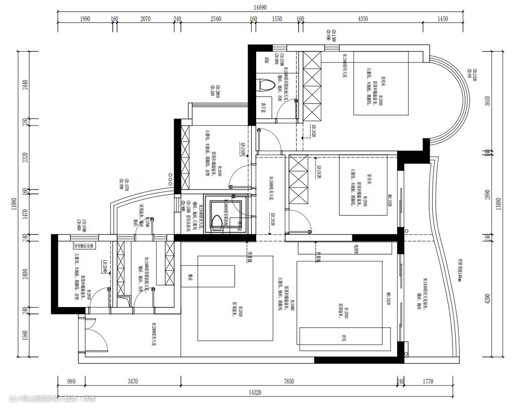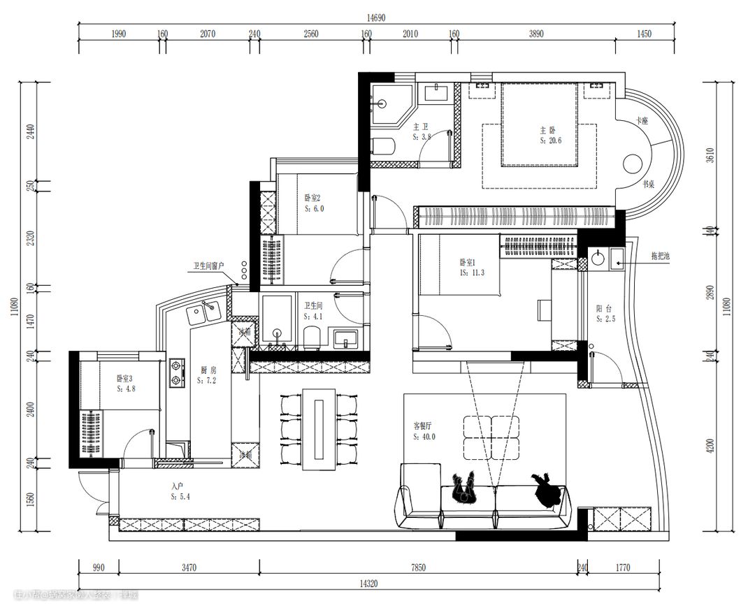 1、每个空间都相对独立,削弱了家庭成员之间的互动,让家少了陪伴的温馨和热闹; 2、厨房和主卫面积都很狭小,难以利用 3、整个空间很开阔,可能被利用的存储空间少,无法满足日常起居需求