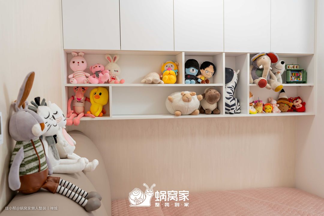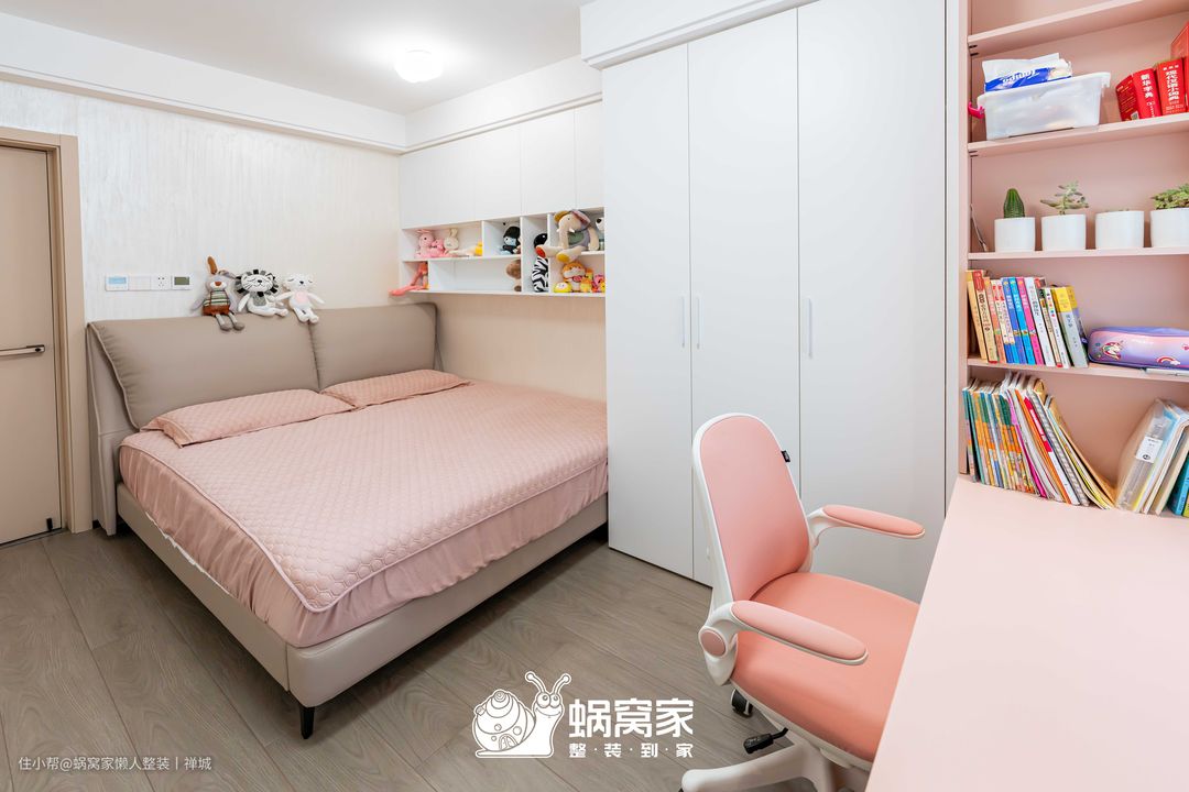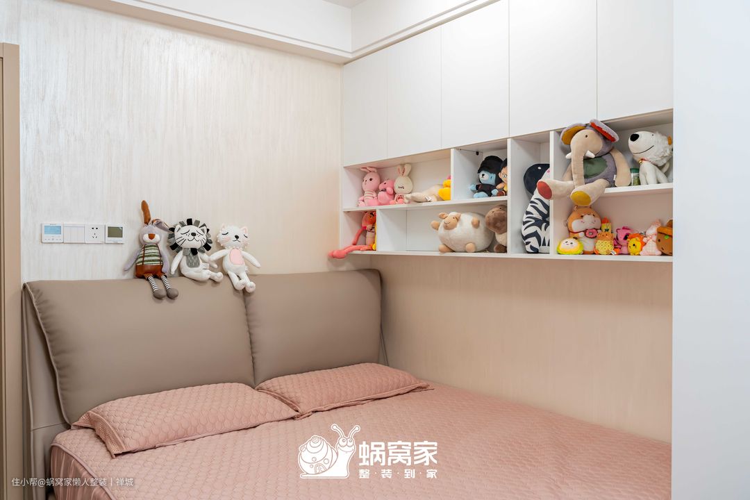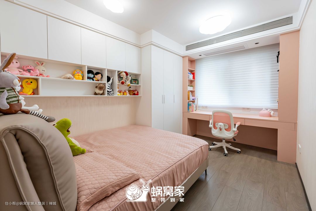 通过白粉两色作为空间主调,从而将儿童房打造成一个充满童真和梦幻的空间,墙面与窗台之间使用定制柜做衔接,空间得以延伸,为儿童房创造了更宽敞和开放的感觉,让视觉有一个连贯性,更显布局的流畅又统一。