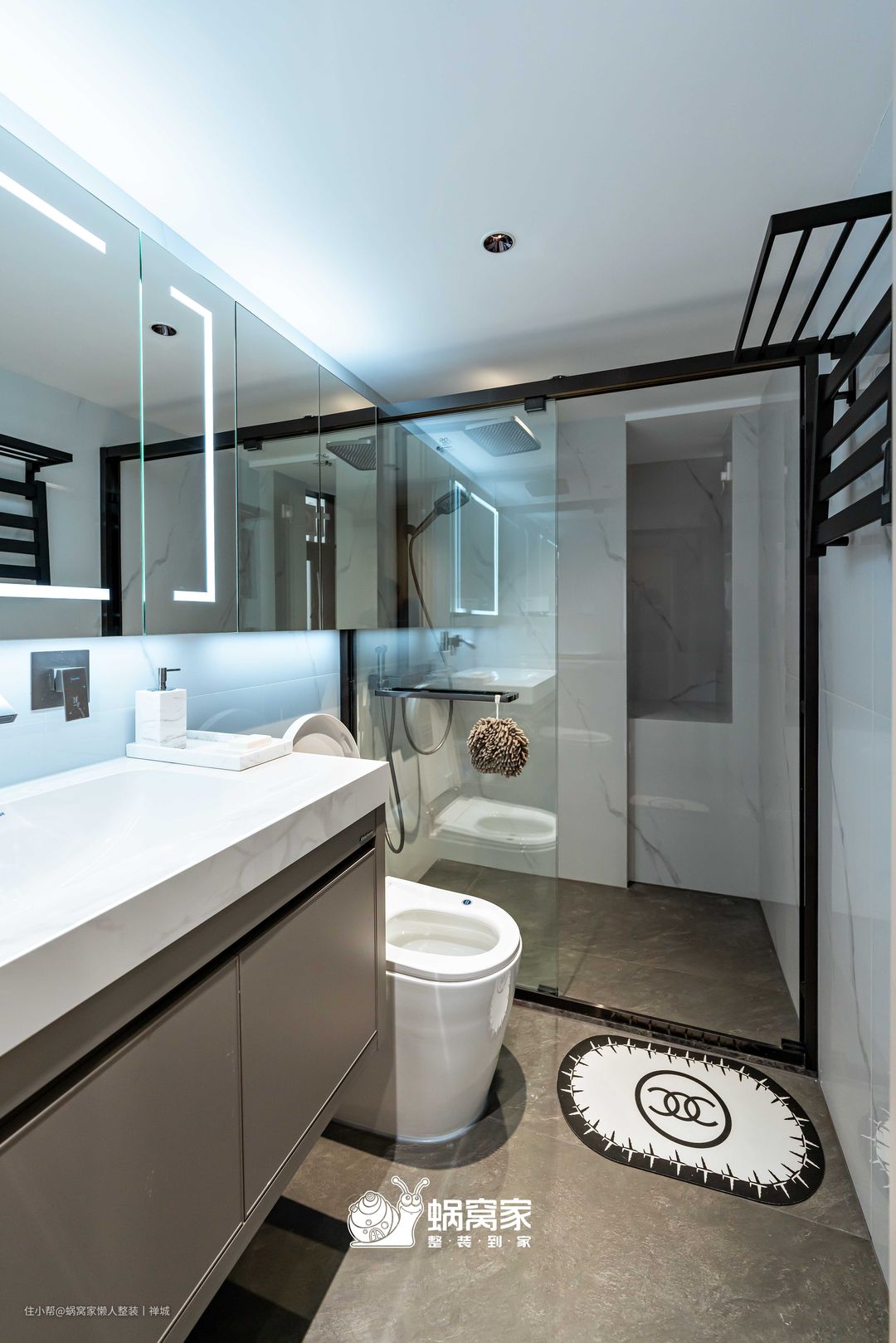 镜柜的设计很好利用马桶上方的空间,方便有多的空间收纳瓶瓶罐罐,既保持台面的整洁干净,又起到防尘的作用,同时大镜面对于近视党的福音,让业主可以更近距离观看, 更容易佩戴美瞳。