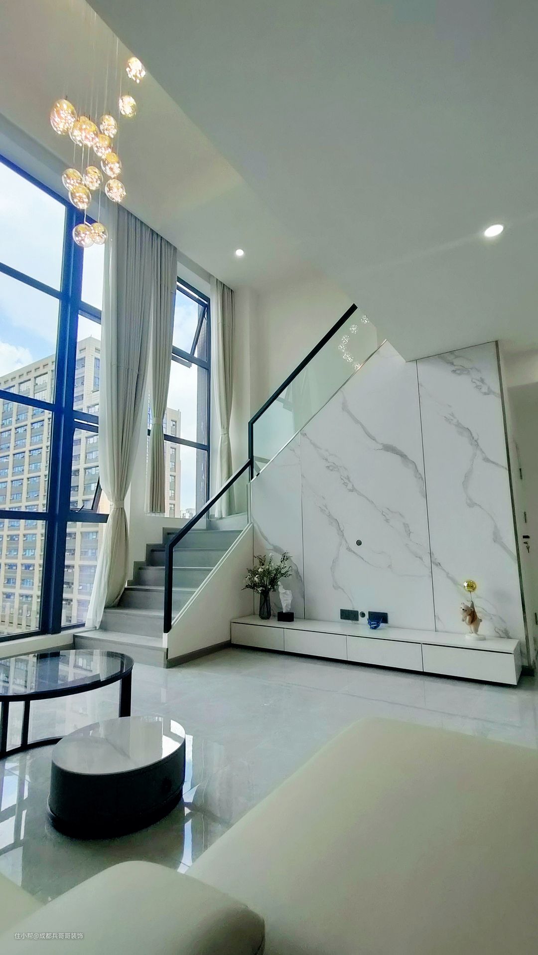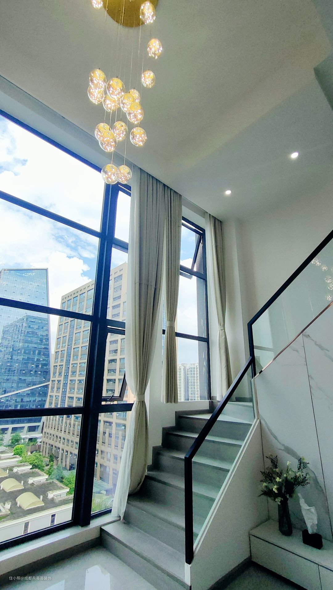 ❤🧡🧡❤ 本套案例位于成都市成华区宇禾置业小区,建筑面积68m²,套内面积48m²,搭建完86m²,层高5米3。原始结构是长度为9.24m、宽度为6.08米的长方形loft公寓,钢结构开发商只搭建了一半,后期再重新设计搭建阁楼。 虽然是公寓,但也要好好设计装修成类似于复式别墅的感觉,整体要看上去要简约、大气。屋主想保留两个房间就够了,一楼客厅一定要不压抑,有设计感。全屋现代简约风格,软装设计雅致自然。 💦一起来看看各个空间的完美展现吧: