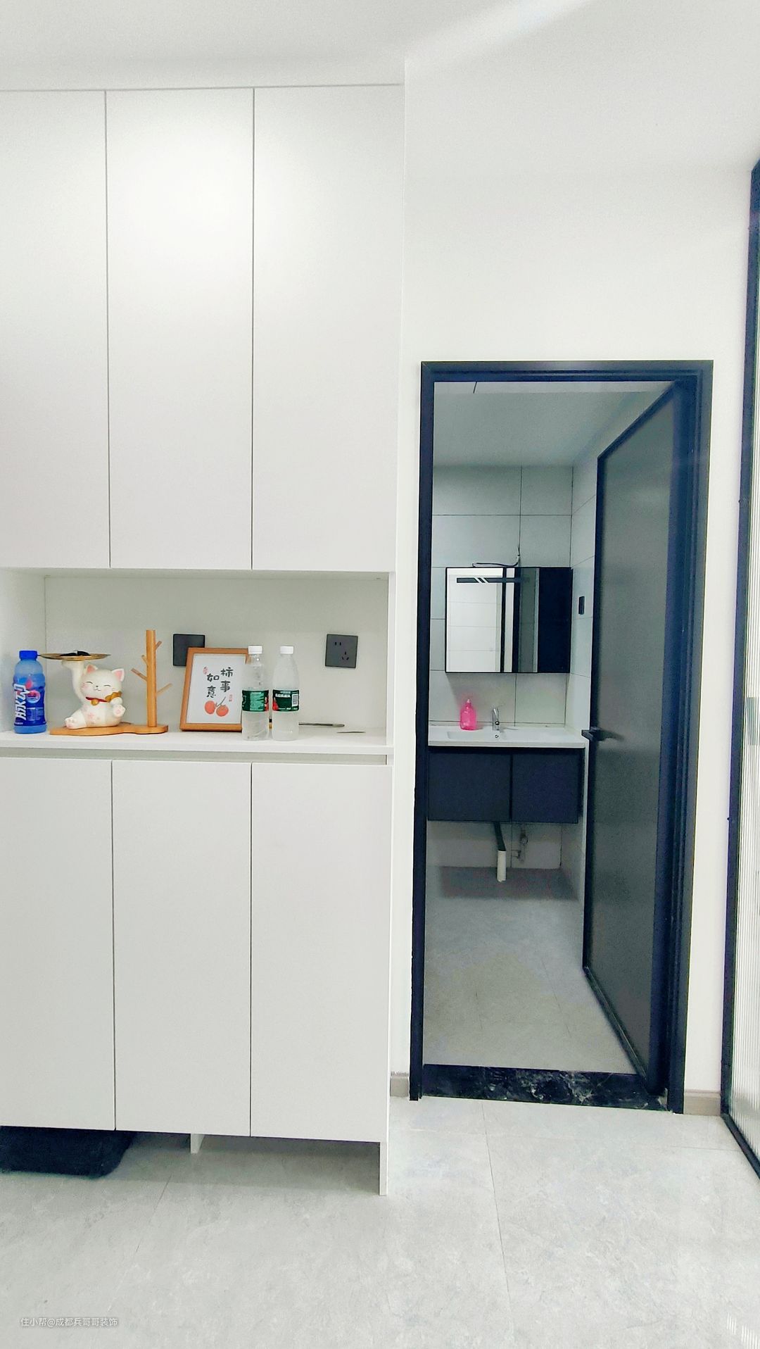 入户玄关设计也很重要,它代表了一个家的第一感官,也是给来往亲朋好友的第一印象,也可谓颜值担当。 首先玄关柜采用的是通顶式设计,储物空间更足。 其次中间区域镂空了30公分,可以摆放创意摆件、钥匙等物品,拿房很方便;底部镂空了15公分的样子,放置体重秤、扫地机器人、常穿的拖鞋,生活也更便捷、舒适。 最后色彩上,玄关柜选用简约白设计,十分耐看,给人一种大方、利落之感……