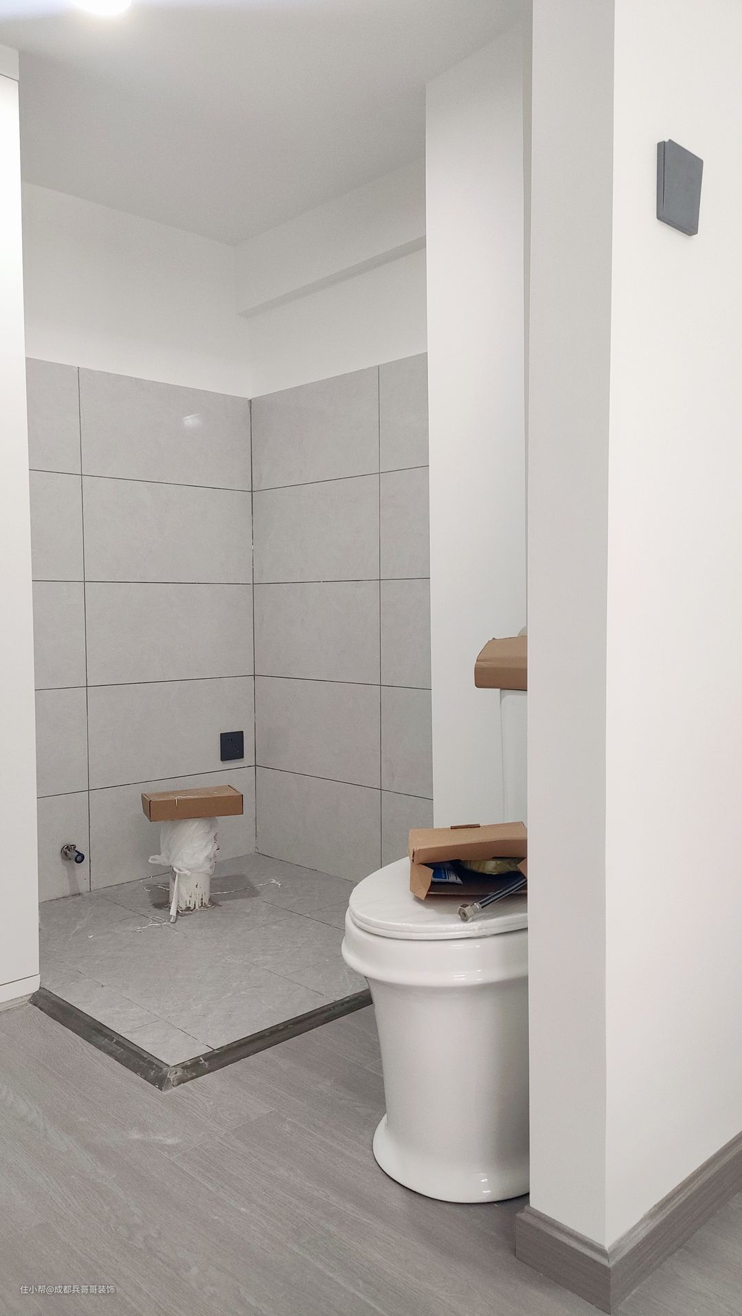 主卧卫生间,安装了马桶,后期会安装玻璃隔断,这样就不用刻意上下楼上厕所了,生活更方便。