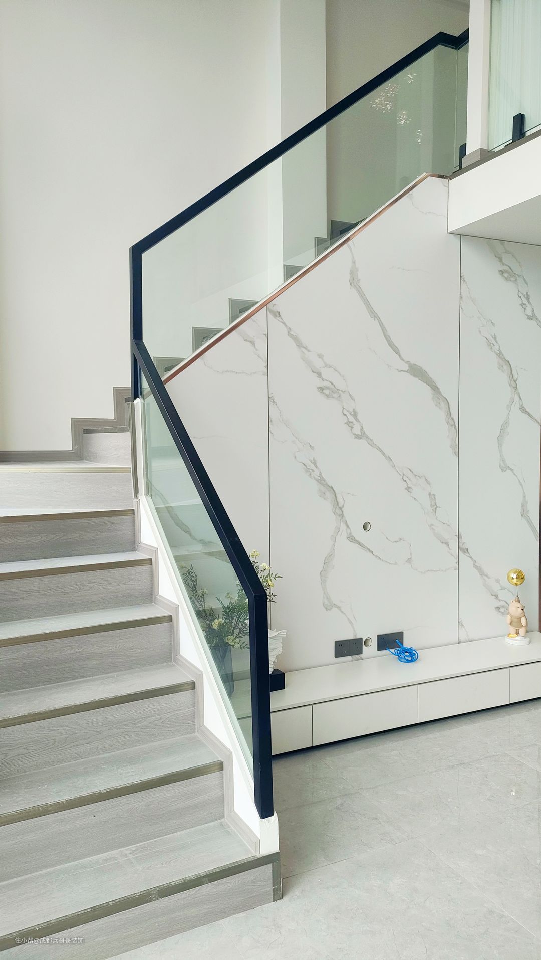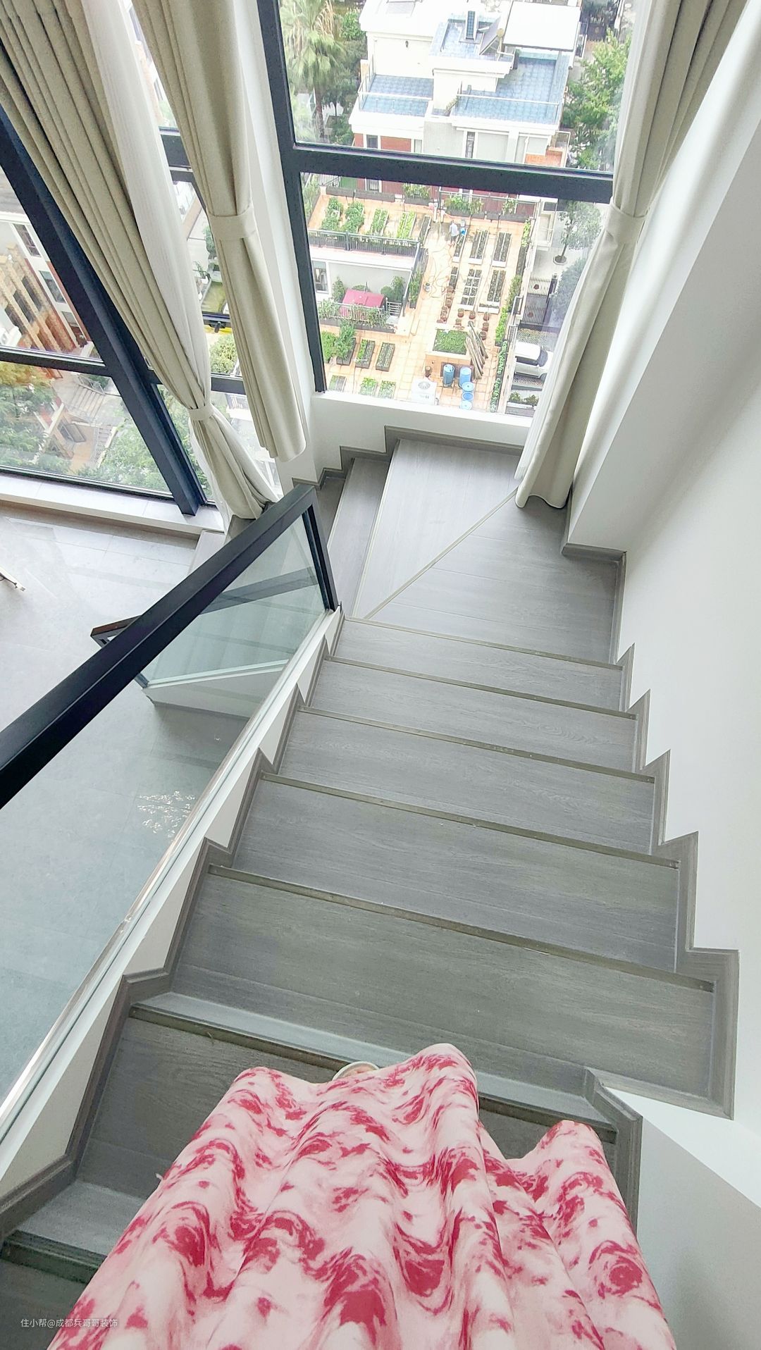 这套公寓楼梯选用7字形楼梯,楼梯下方做储物间,空调外机放在里面,看上去更美观。楼梯采用木地板踏步+实木玻璃扶手,简约大气。楼梯尺寸:长*宽*高——1.1m*0.23m*0.20m,根据常住人口身高设计,上下楼梯更舒适……