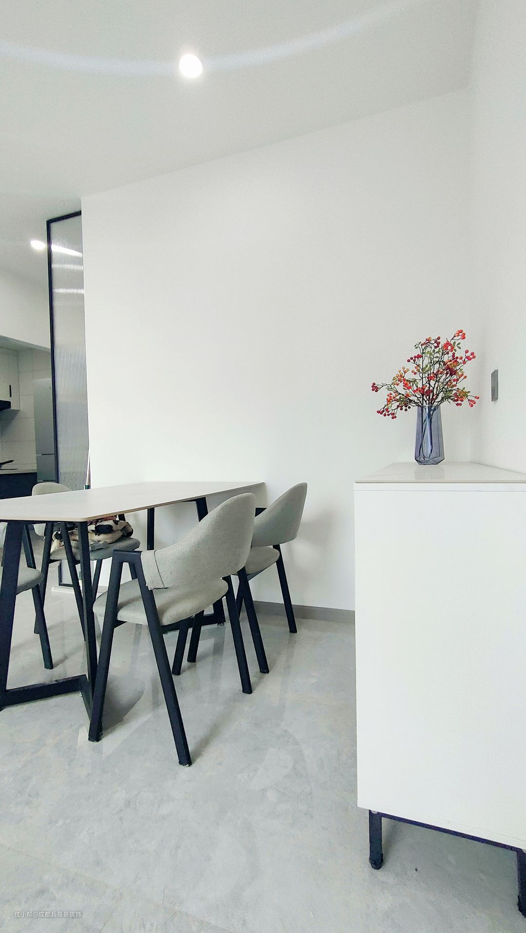 餐厅,开放式设计,但面积足够大,简单摆放了餐桌和餐椅,还有餐边柜,越简单的家居陈列越能表达空间美感。