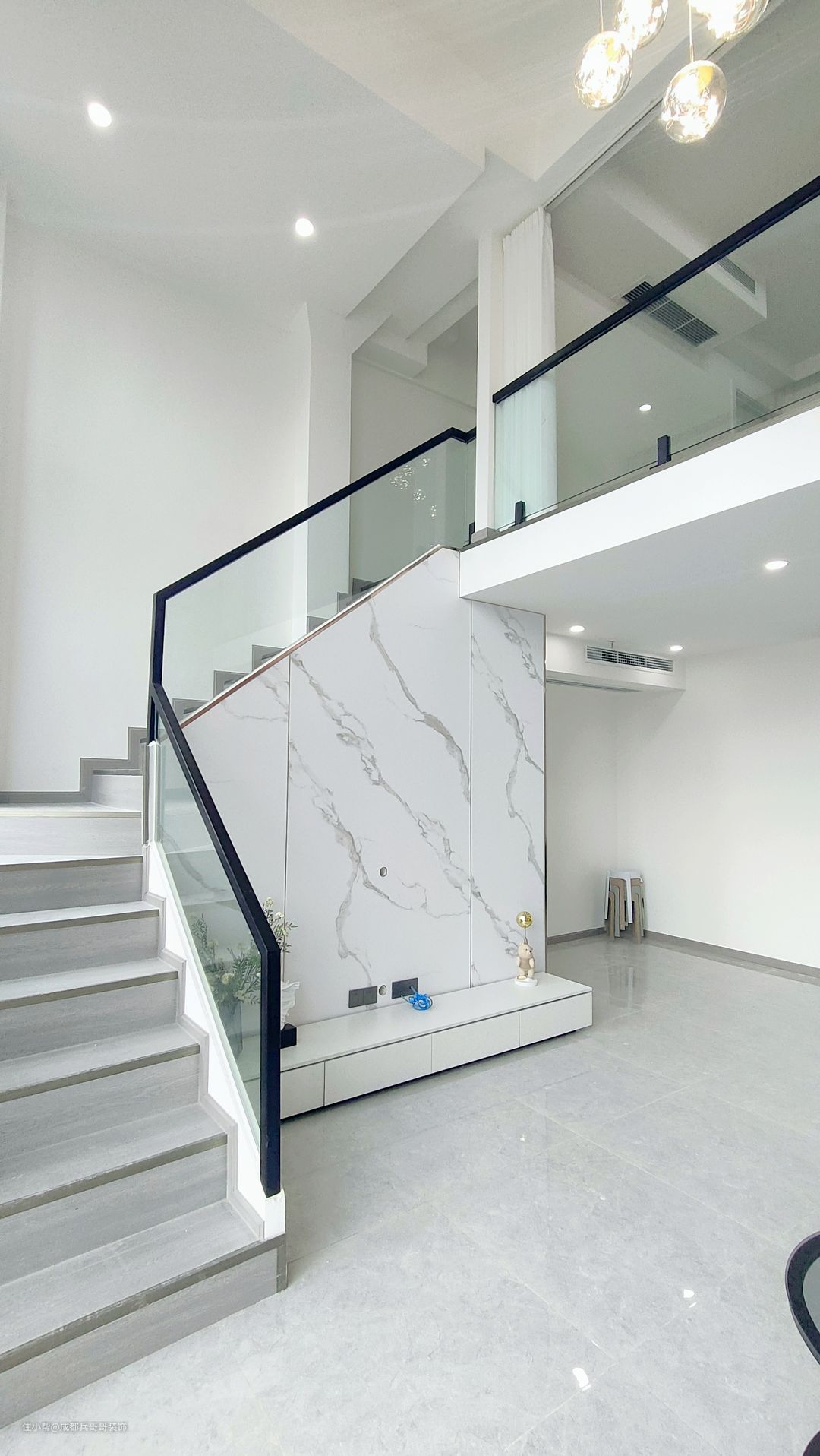 ❤🧡🧡❤ 本套案例位于成都市成华区宇禾置业小区,建筑面积68m²,套内面积48m²,搭建完86m²,层高5米3。原始结构是长度为9.24m、宽度为6.08米的长方形loft公寓,钢结构开发商只搭建了一半,后期再重新设计搭建阁楼。 虽然是公寓,但也要好好设计装修成类似于复式别墅的感觉,整体要看上去要简约、大气。屋主想保留两个房间就够了,一楼客厅一定要不压抑,有设计感。全屋现代简约风格,软装设计雅致自然。 💦一起来看看各个空间的完美展现吧:
