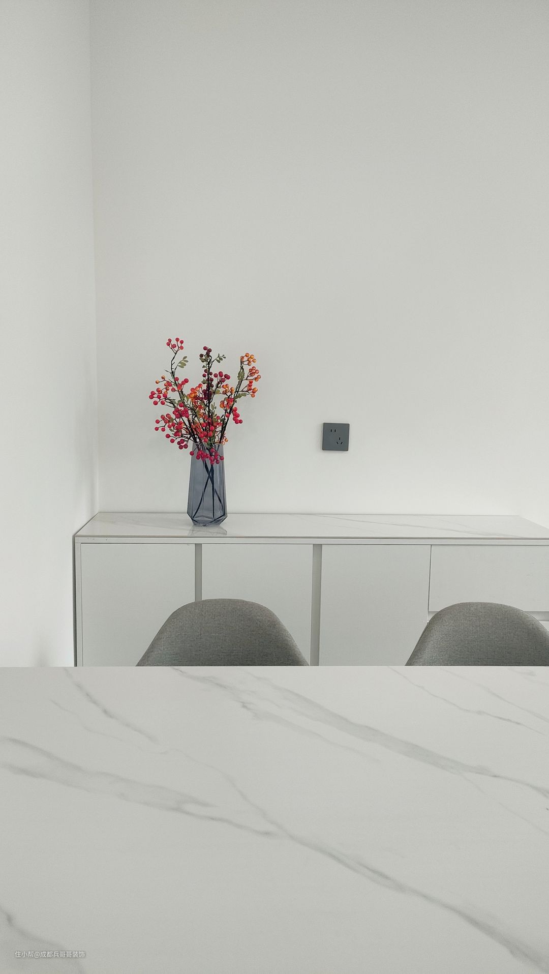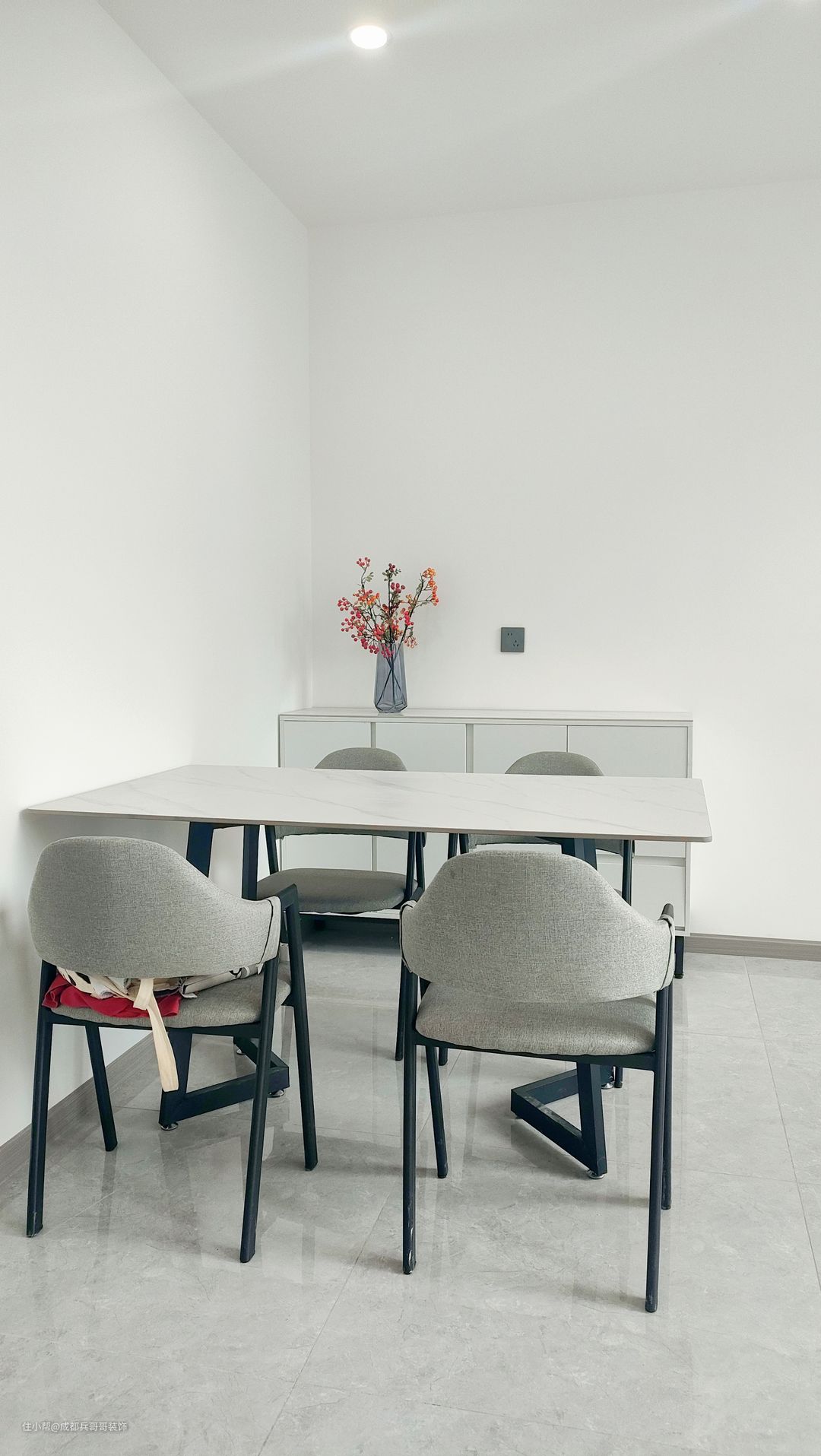 餐厅,开放式设计,但面积足够大,简单摆放了餐桌和餐椅,还有餐边柜,越简单的家居陈列越能表达空间美感。