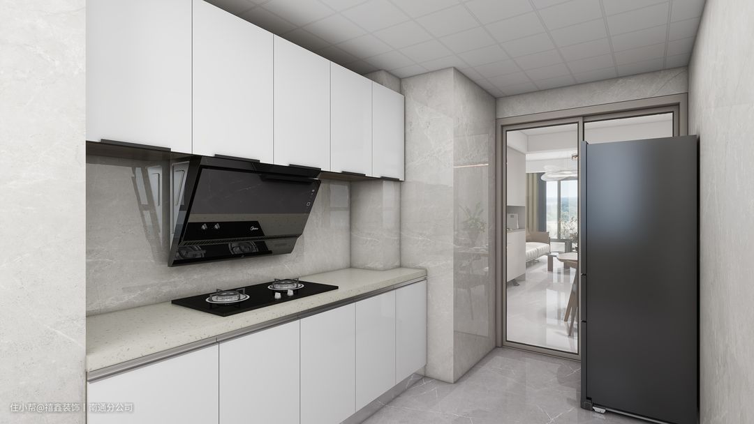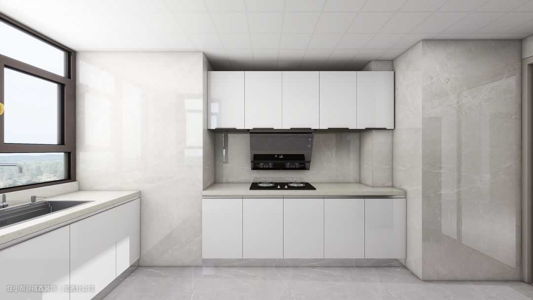 厨房充裕的面积和其空间收纳的广泛应用,使得这间厨房十分能容物,为了方便打理,两侧管道被用瓷砖镶嵌成墙,显得更加整洁美观!