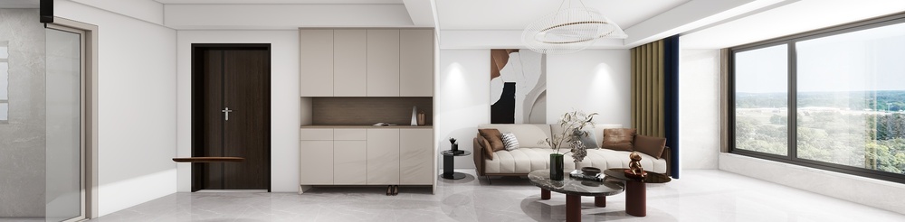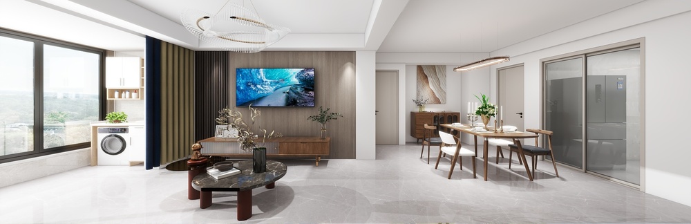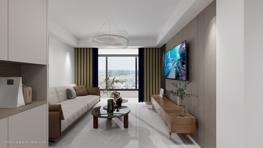 客厅的明亮度出乎我们的意料,站在大落地窗前,向外俯瞰街景一览无余,搭配木质电视柜和简约茶几,坐在柔软的沙发上看着电视,是多么惬意呀!