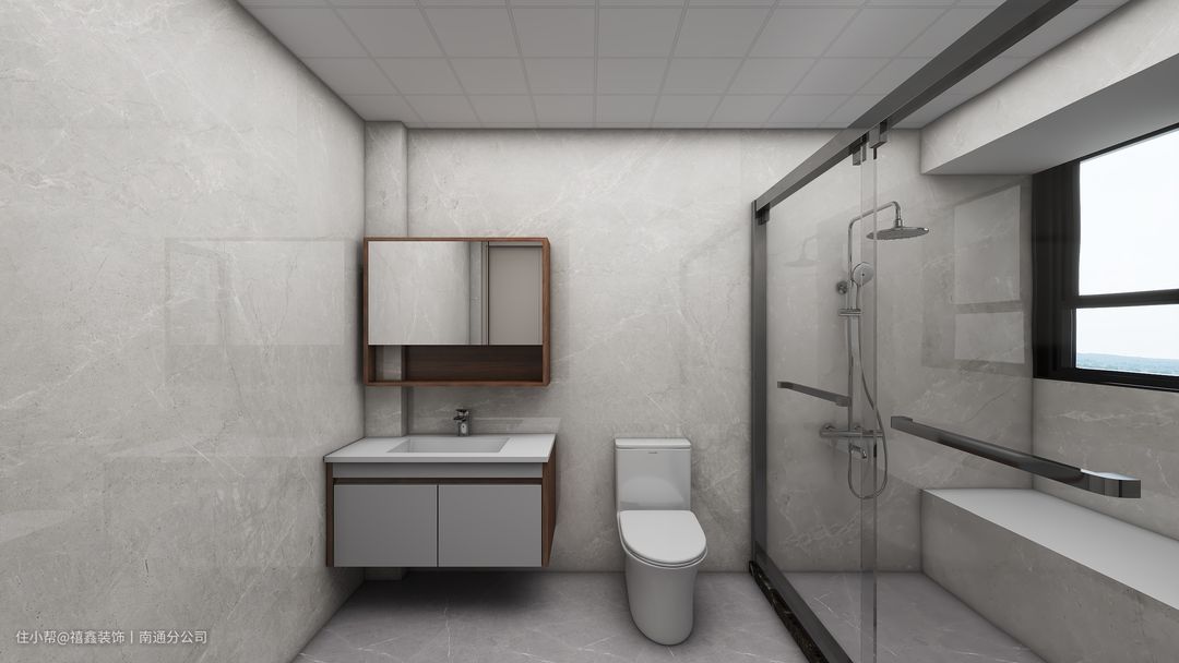 卫生间做了很大改动。原本过大的卫生间做了调整,让老人洗澡的时候能有坐着洗澡的空间,因为这个贴心的设计还赢得了客户的赞扬!