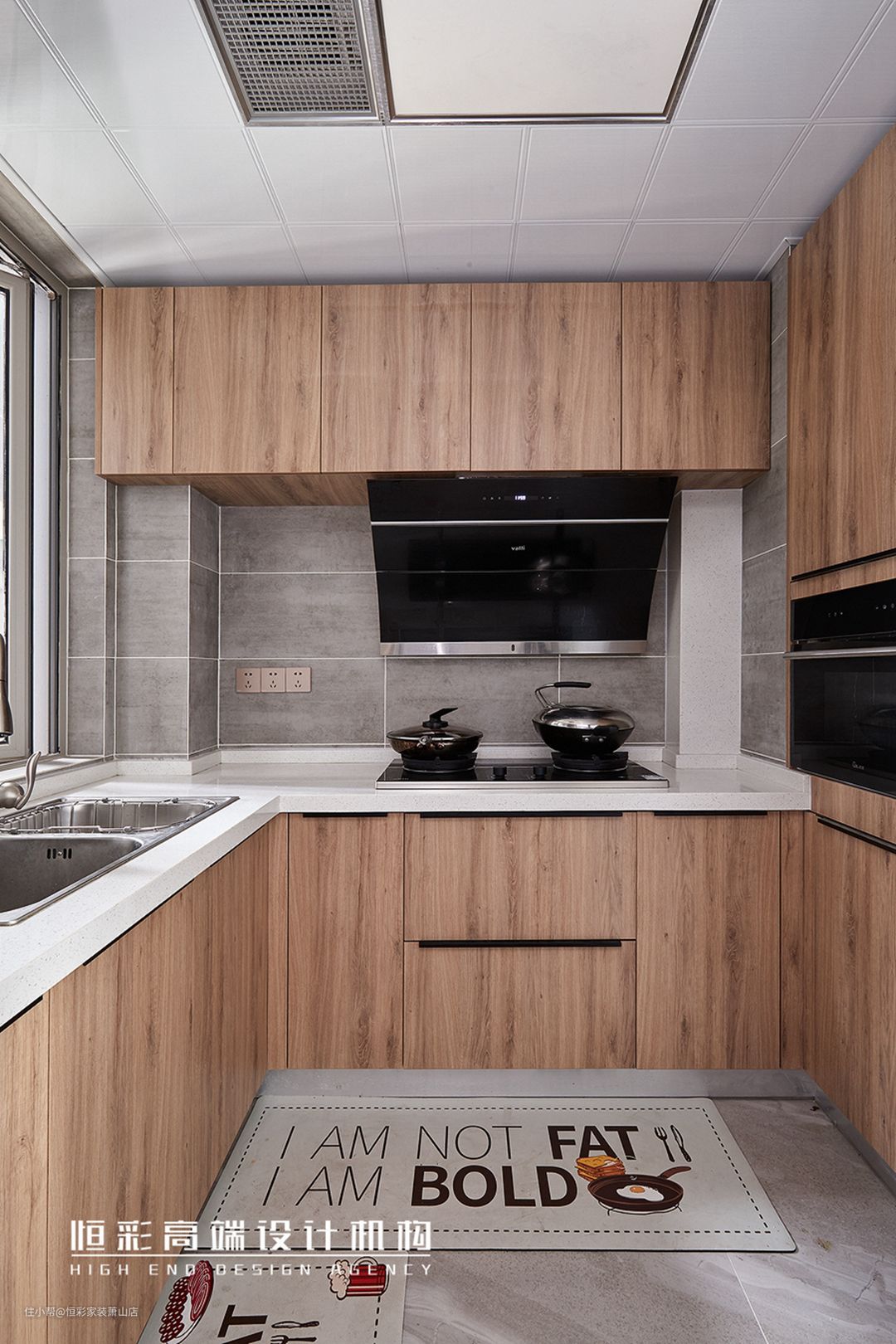 没有硬装隔断的功能区,简约一体化的厨房,灰色和白色以及原木色是北欧风格装修的主要色调。简单的字母脚垫则又增加了一份混搭的味道。