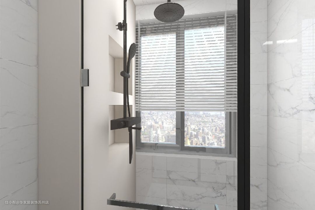卫浴间选择带白色的独特的花纹墙砖,光泽度高,使整个空间更显宽敞明亮,整体显得格外的时尚大方。 干湿分离,淋浴间增加壁龛设计,增加卫生间空间利用率,视觉上有延伸效果,且拿取物品时更加方便、安全。