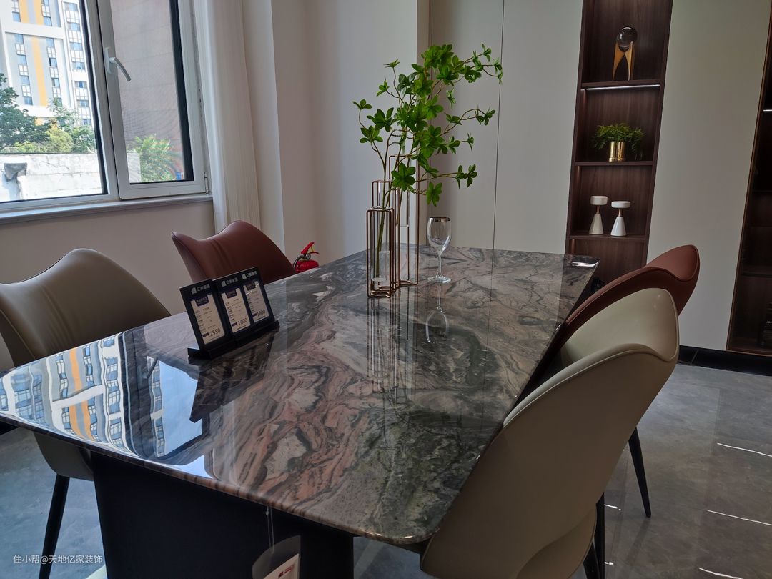餐厅做了到顶餐边柜,增加收纳,做了开放格设计加装灯带,增加透气性,整体看起来美观又有简约感。
